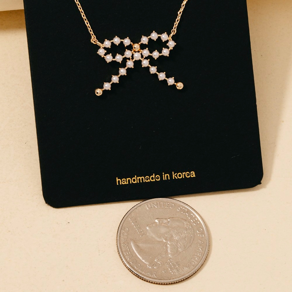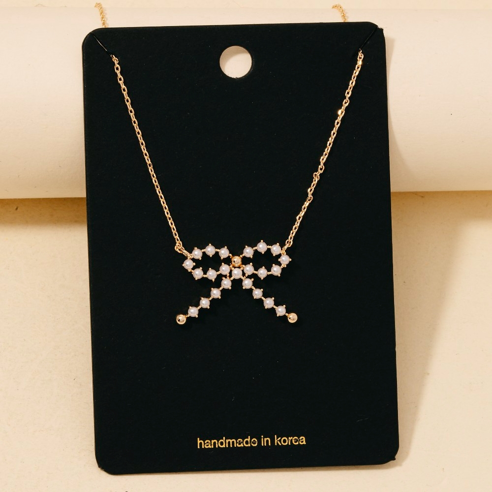 Elevate your style with something unique and daring, this necklace possesses a fine pearl studded bow pendant design. The perfect way to elevate any outfit, this necklace adds a touch of elegance and style. Available in G. This item is sold in packs of 1.