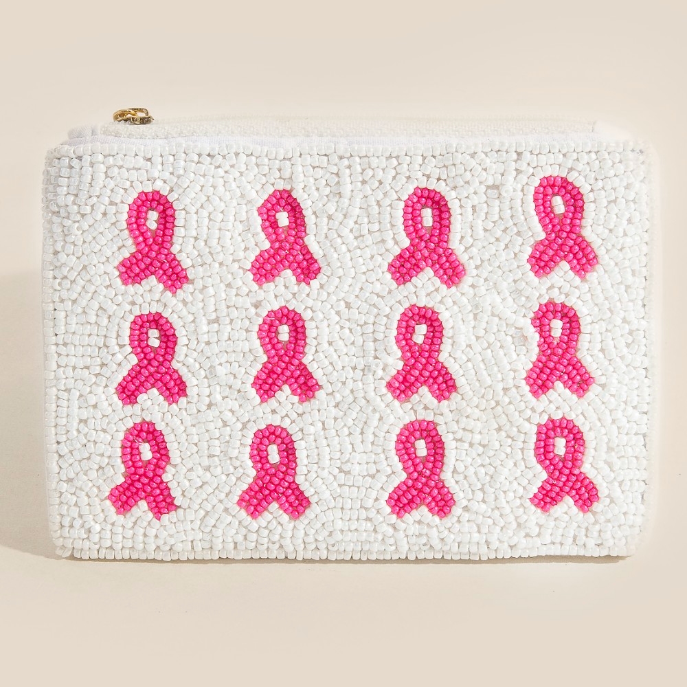 - Add a touch of luxury to any outfit, this coin purse encompasses a grand breast cancer awareness ribbons seed beaded design. A must-have coin purse that adds a unique flair to any look. Available in MULTI. This item is sold in packs of 1.
