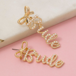 Pearl Pave Bride And Bow Stud Dangle Earrings