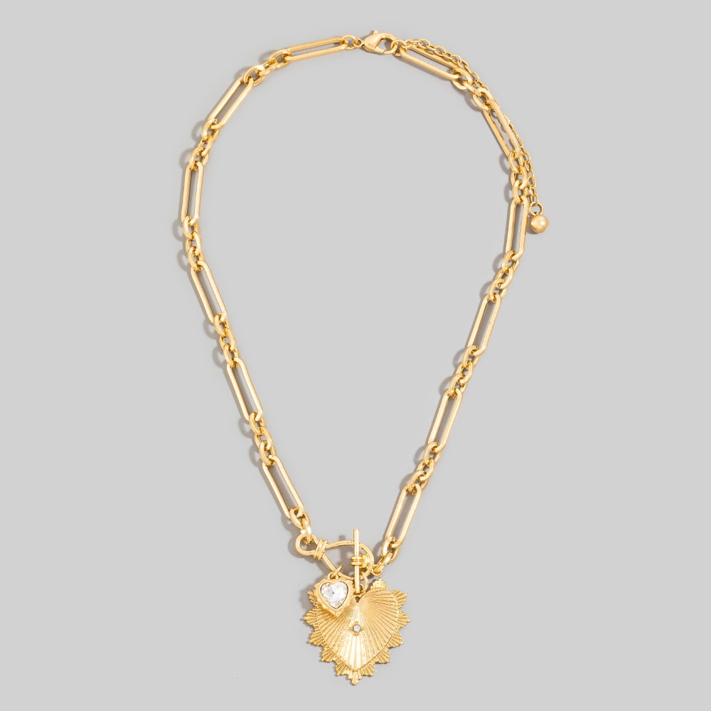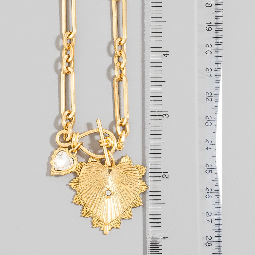 • Bold, daring, and endlessly stylish, this chain necklace showcases an alluring double heart pendants oval design. Take your style to the next level by incorporating this versatile chain necklace, a key element in achieving a polished look. Available in VG. This item is sold in packs of 1.