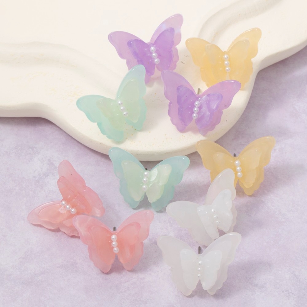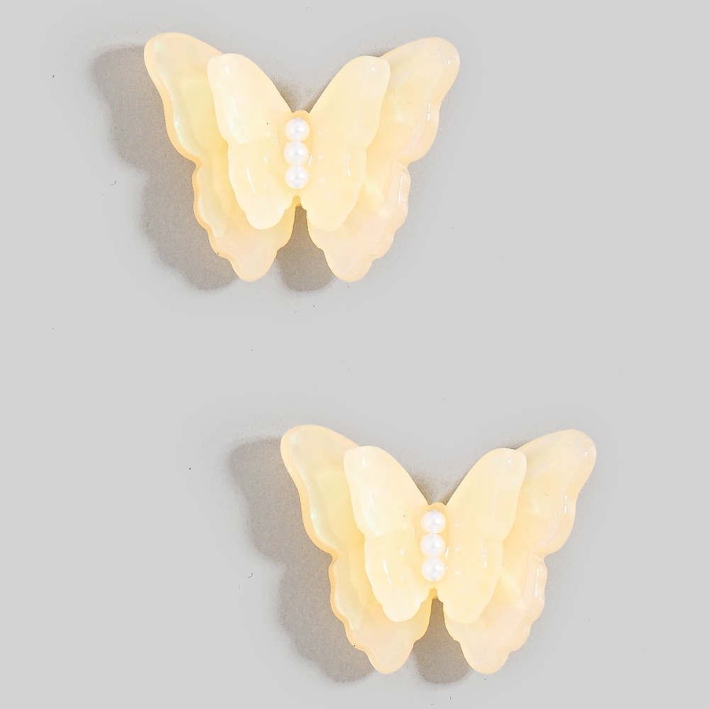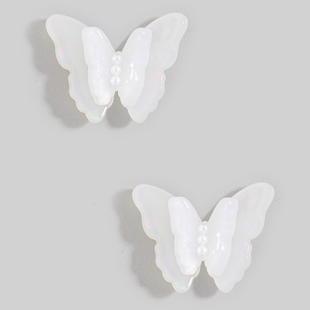 Add some edge to your wardrobe, this pair of stud earrings features an exceptional acetate butterfly design. Unlock endless styling possibilities with this versatile pair of stud earrings, creating a signature look that speaks volumes. Available in LPK, LVD, LYEL, MNT, WHT. This item is sold in packs of 1.