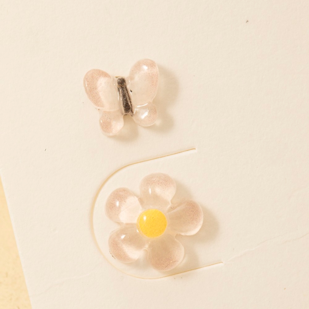 • Elevate your style with something unique and daring, this pair of stud earrings showcases a breathtaking clear acrylic pink flower and butterfly set design. Redefine your wardrobe with this versatile pair of stud earrings, a timeless addition that brings an air of sophistication to any look. This item is sold in packs of 1.