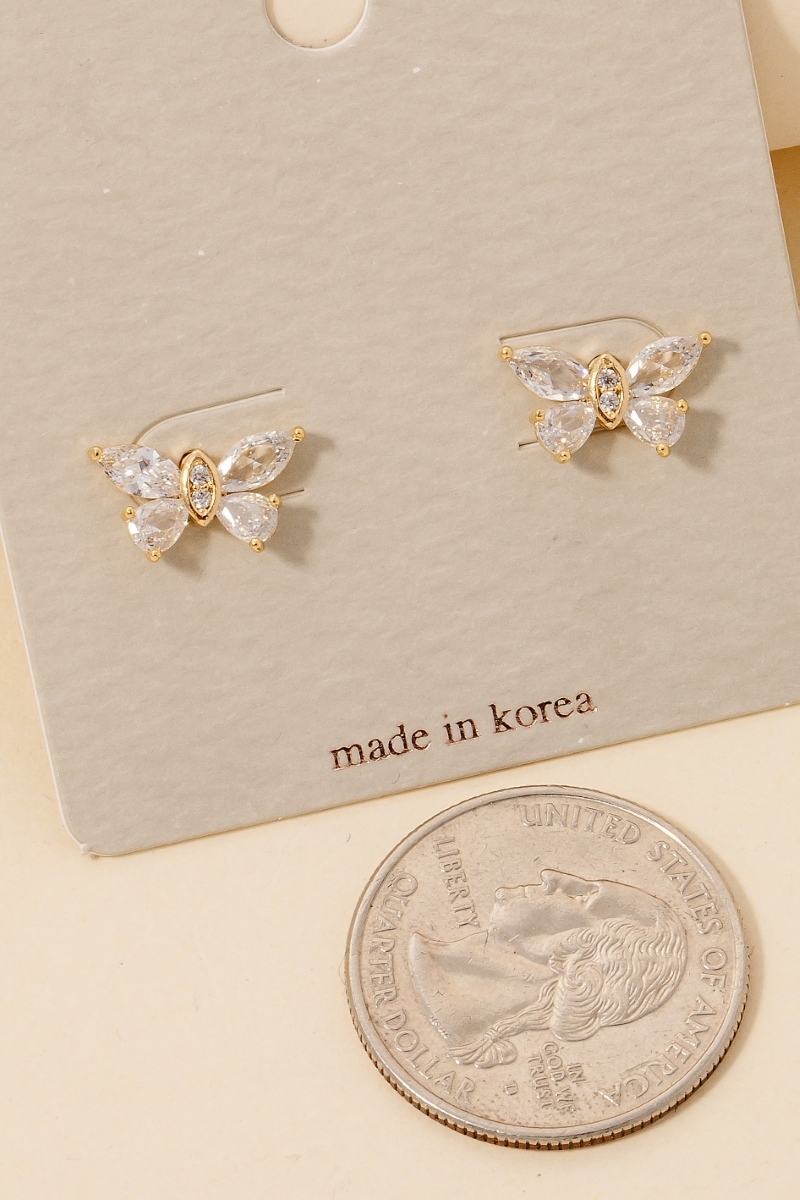 Cz Baguettes Butterfly Stud Earrings