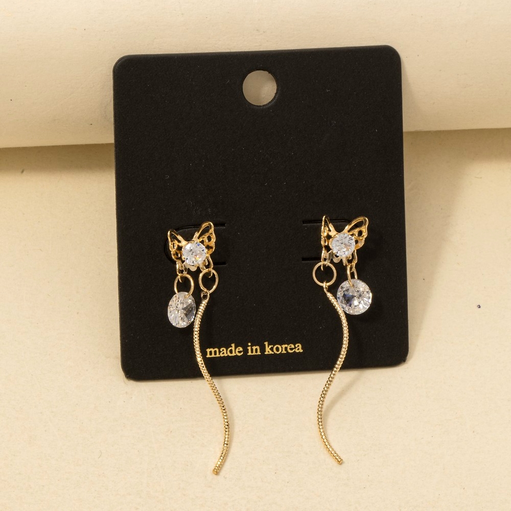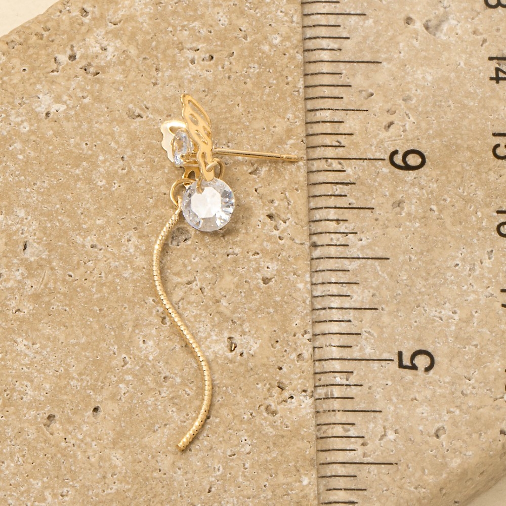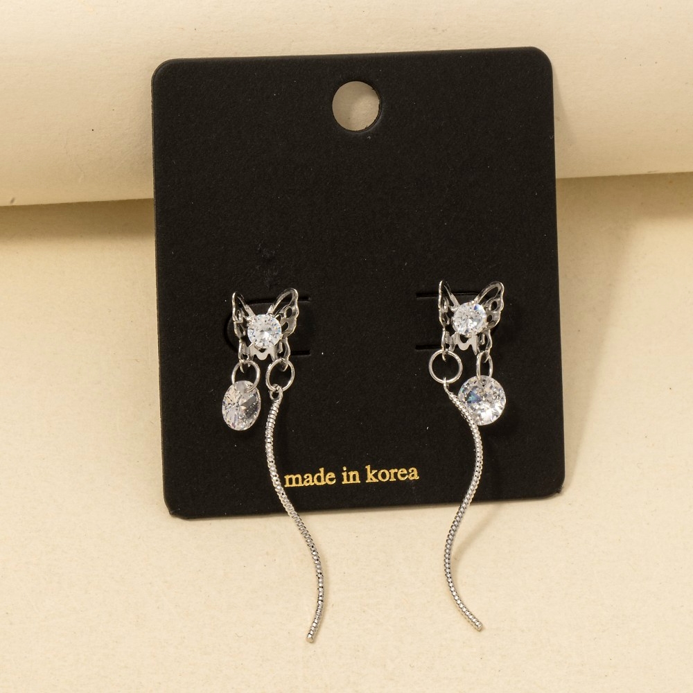 Cz Baguettes Butterfly Stud Dangle Earrings
