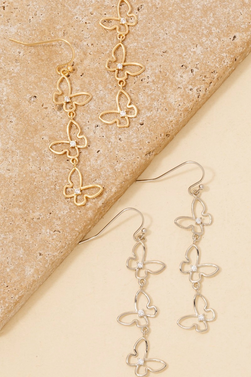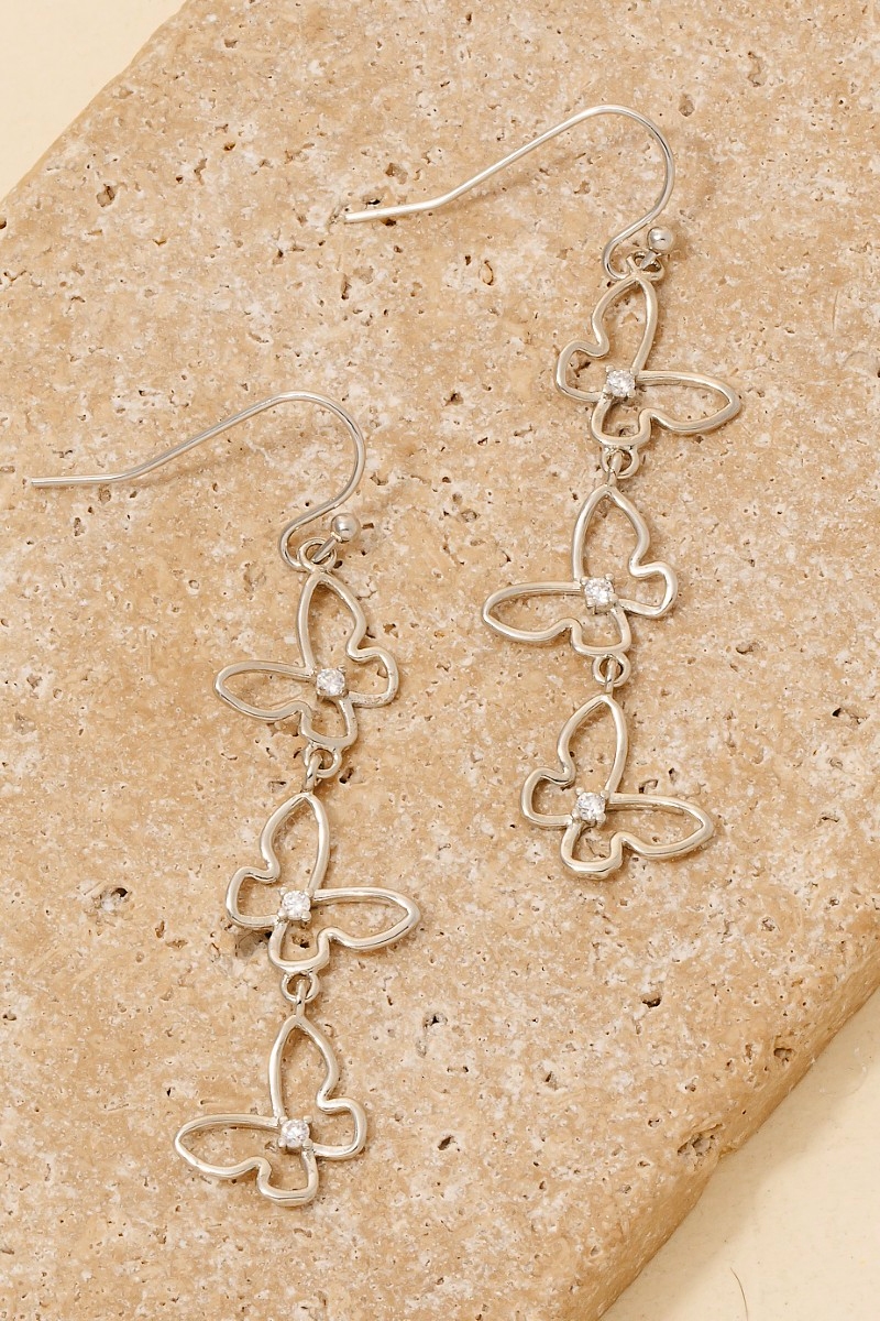 Cz Baguettes Butterfly Stud Dangle Earrings