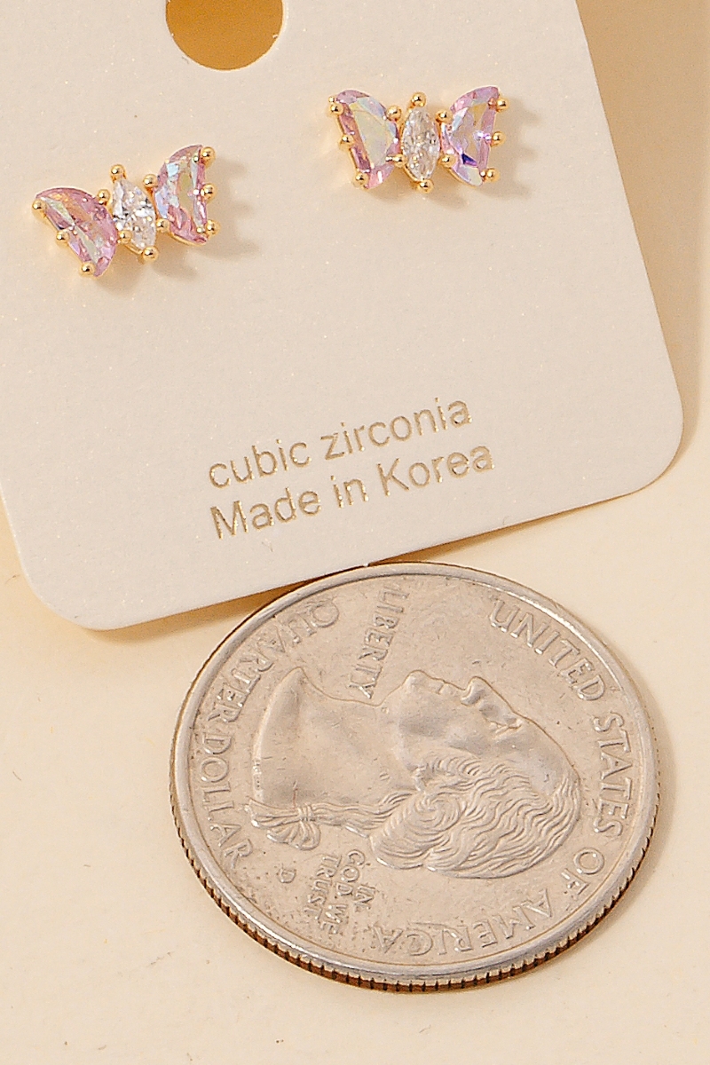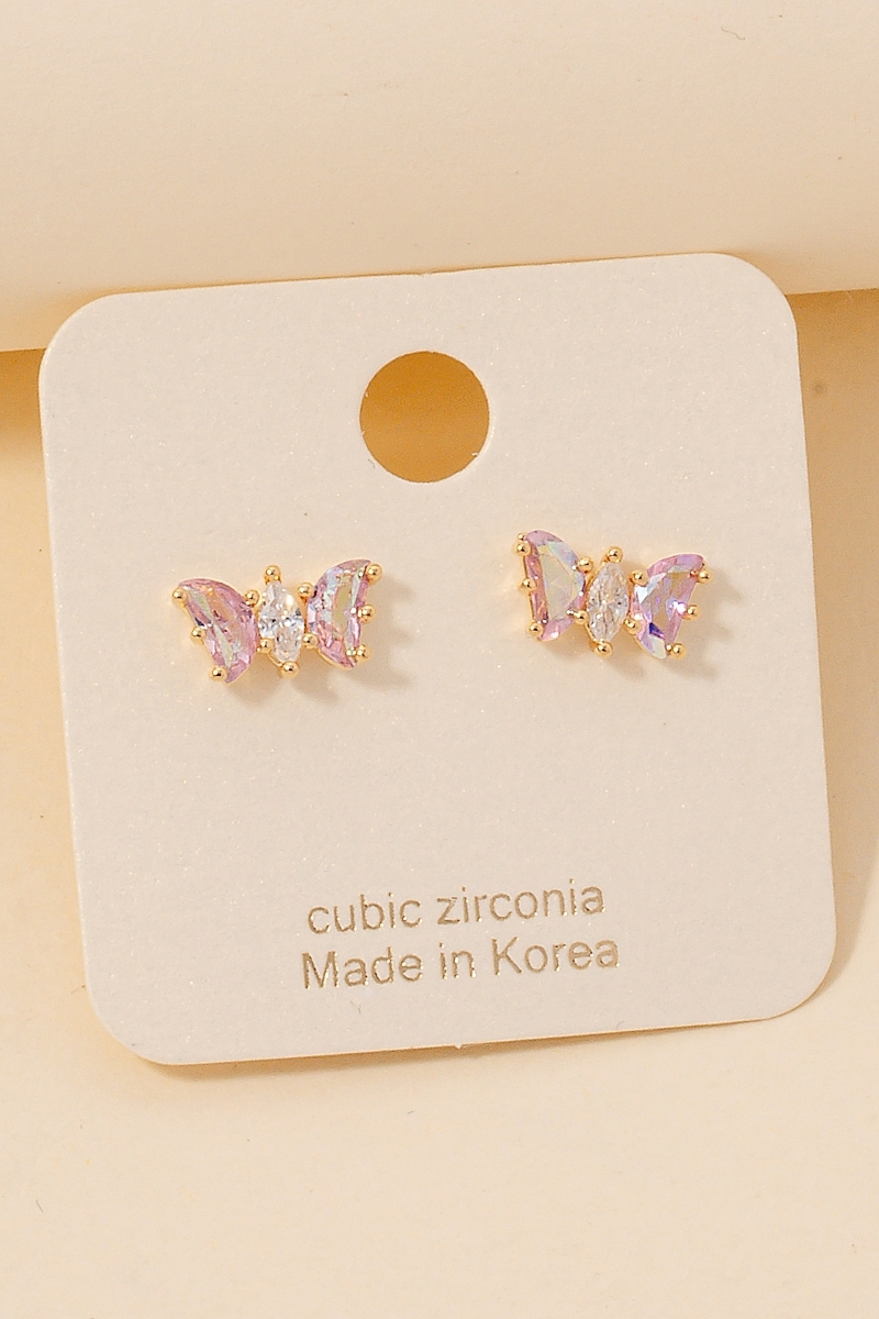 • This pair of stud earrings brings a luxurious cz studded butterfly style. Experience refined sophistication with this understated yet stylish piece.