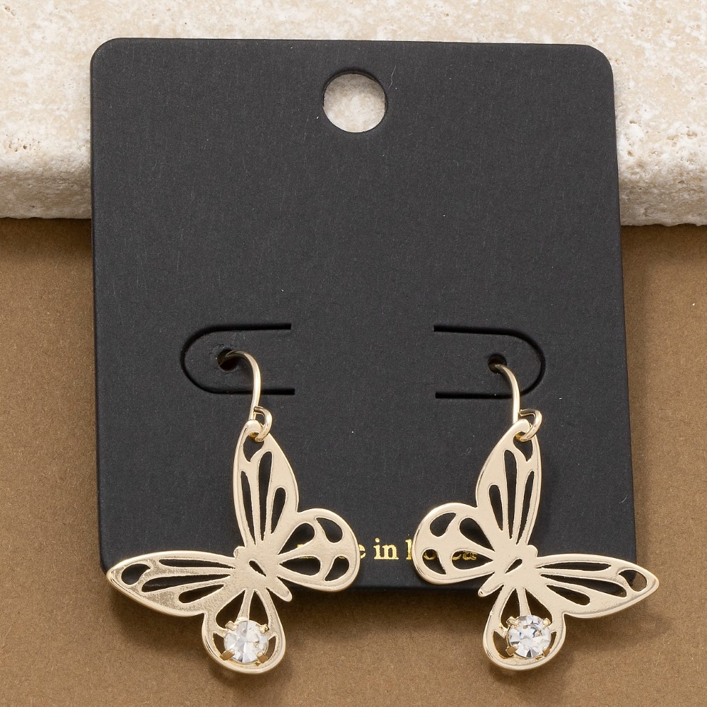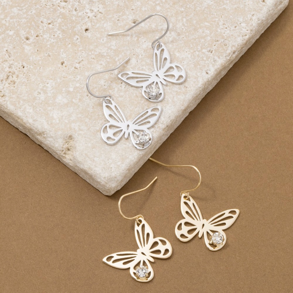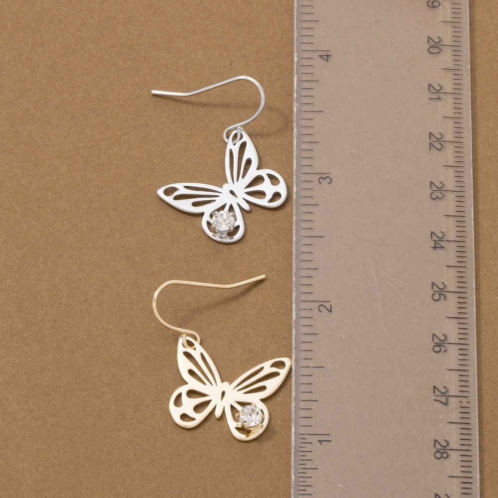 • Perfectly versatile and endlessly stylish, this pair of dangle earrings introduces an exceptional faceted gem and butterfly design. Discover the magic of accessorizing with this versatile pair of dangle earrings, effortlessly upgrading the style quotient of any outfit. Available in G, S. This item is sold in packs of 1.