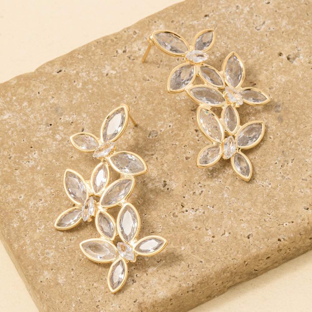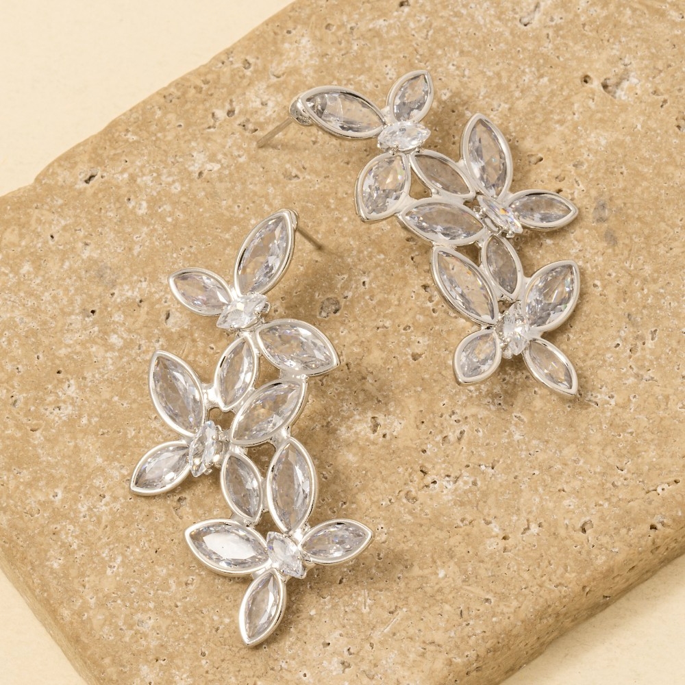 • This is the perfect pair of drop earrings for any occasion pair of drop earrings embodies a sophisticated faceted oval cubic zirconia butterflies cluster stud design. Elevate your style effortlessly with this versatile pair of drop earrings, enhancing the appeal of any ensemble. Available in GD, S. This item is sold in packs of 1.