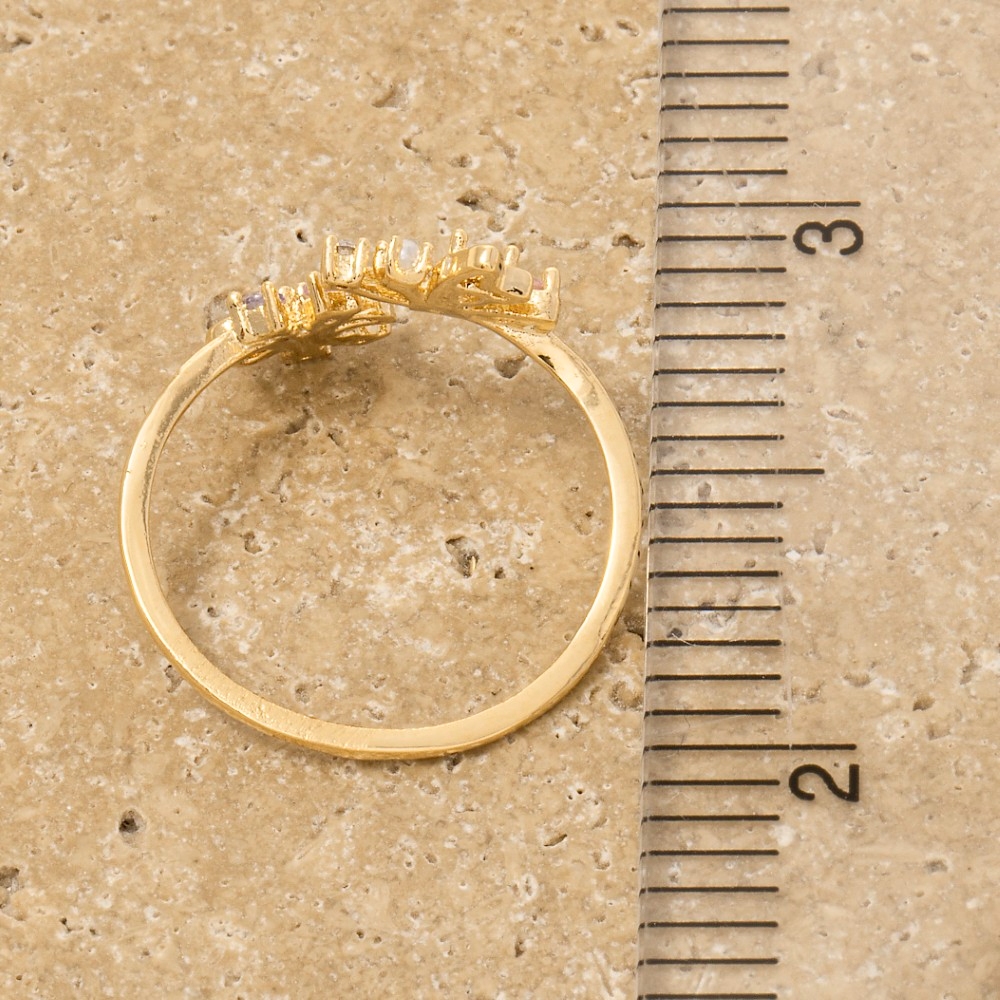 Gold Dipped Cz Flower And Butterfly Ring