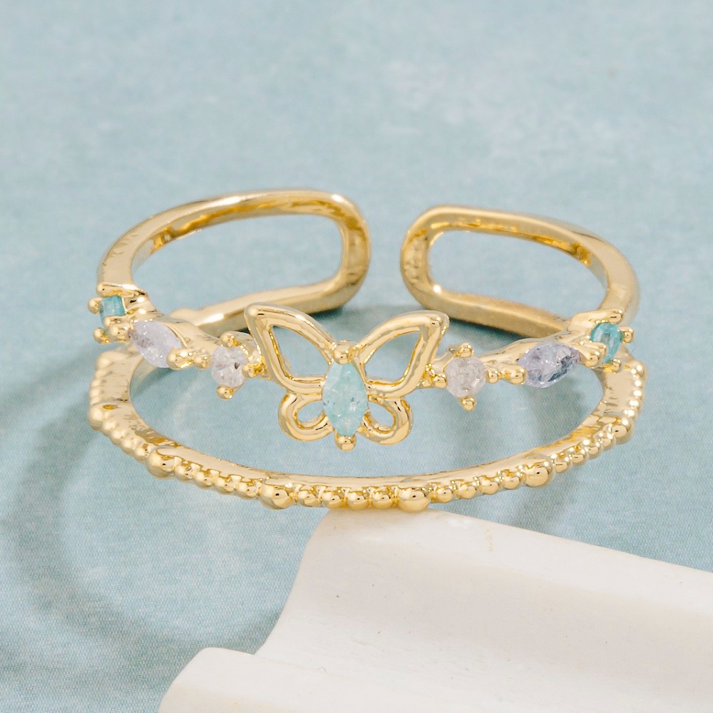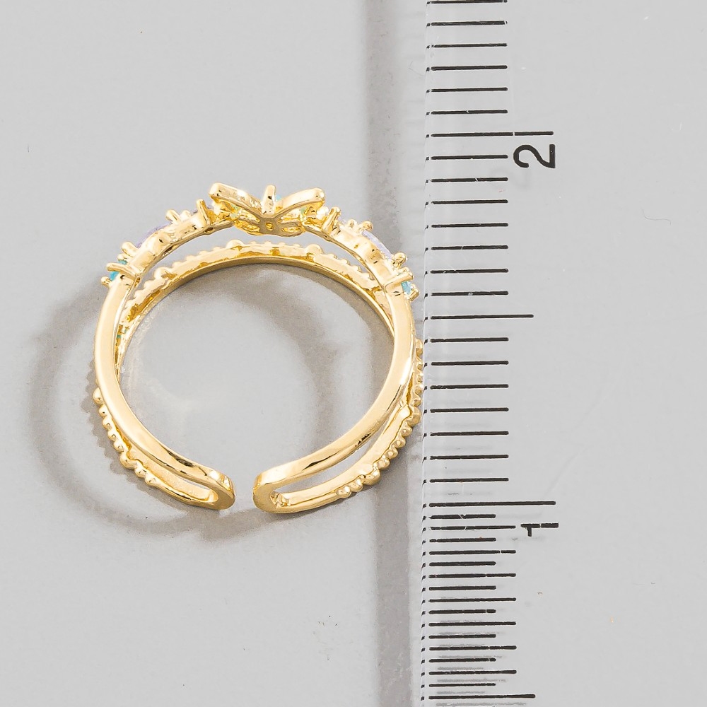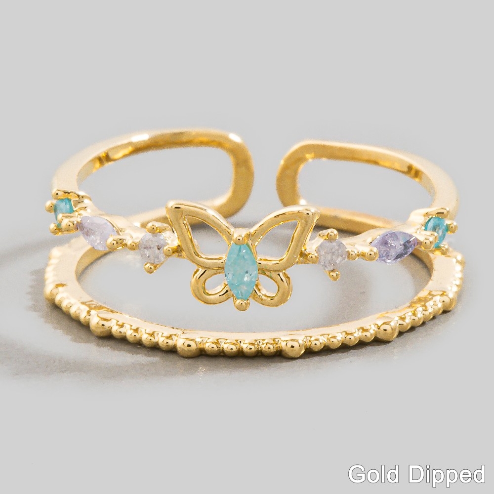 Gold Dipped Cz Opal Cluster & Butterfly Double Band Ring