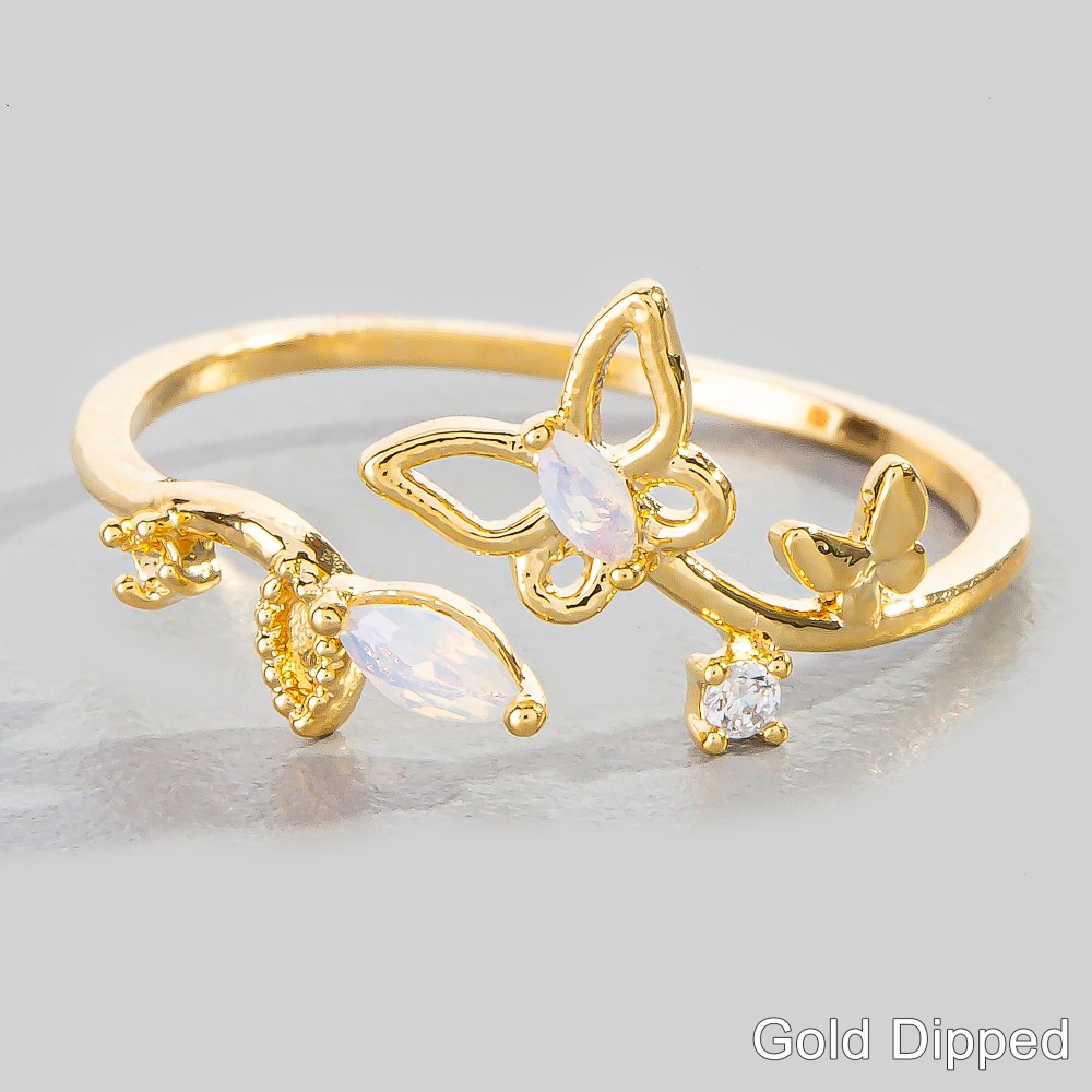 Make a statement, this ring evokes a captivating gold dipped cubic zirconia butterfly leaf design. Perfect for dressing up or down, this versatile ring adds a touch of sophistication to any look. Available in G. This item is sold in packs of 1.