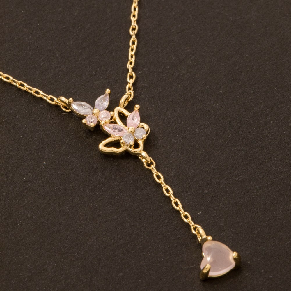 • This season's hottest chain necklace, this chain necklace reveals an intricate gold dipped cubic zirconia butterflies y design. Transform your outfit into a fashion masterpiece with this versatile chain necklace, an essential for the style-conscious individual. Available in G. This item is sold in packs of 1.