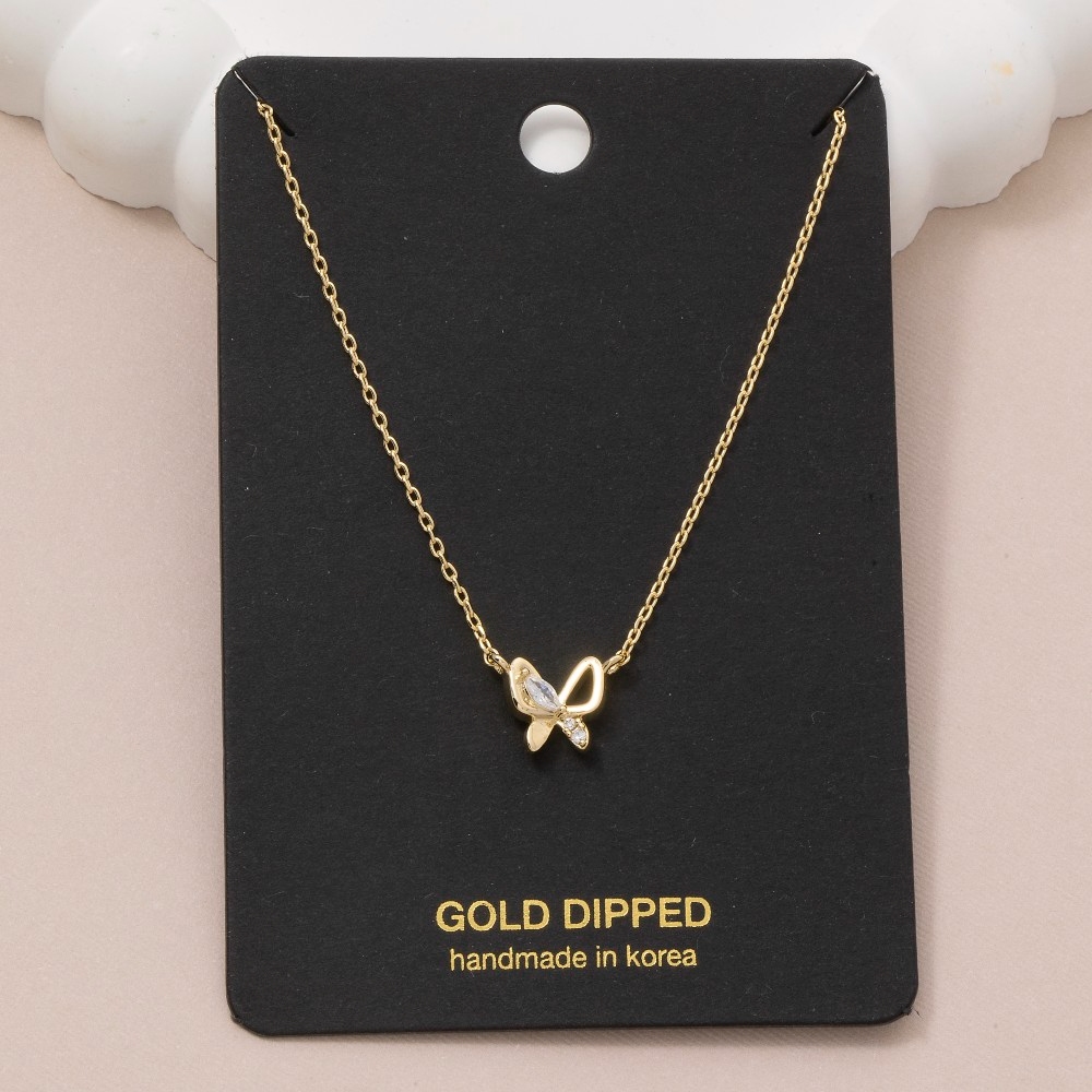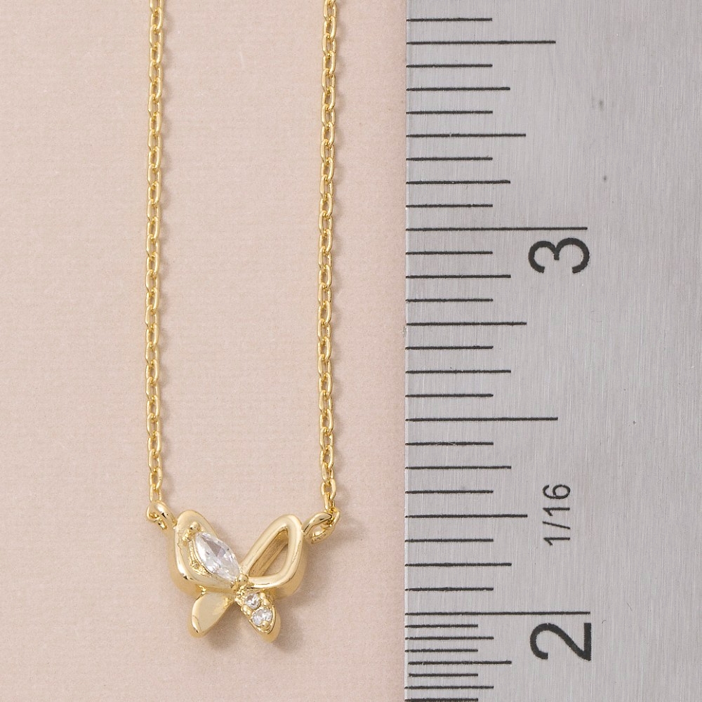 This piece is the perfect way to add some glamour to your look, this pendant necklace carries a charming gold dipped cubic zirconia butterfly design. Elevate your style effortlessly with this versatile pendant necklace, enhancing the appeal of any ensemble. This item is sold in packs of 12.