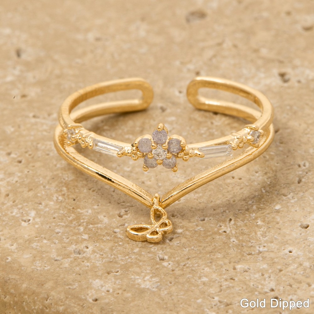 Gold Dipped Cz Cluster & Butterfly Double Band Ring