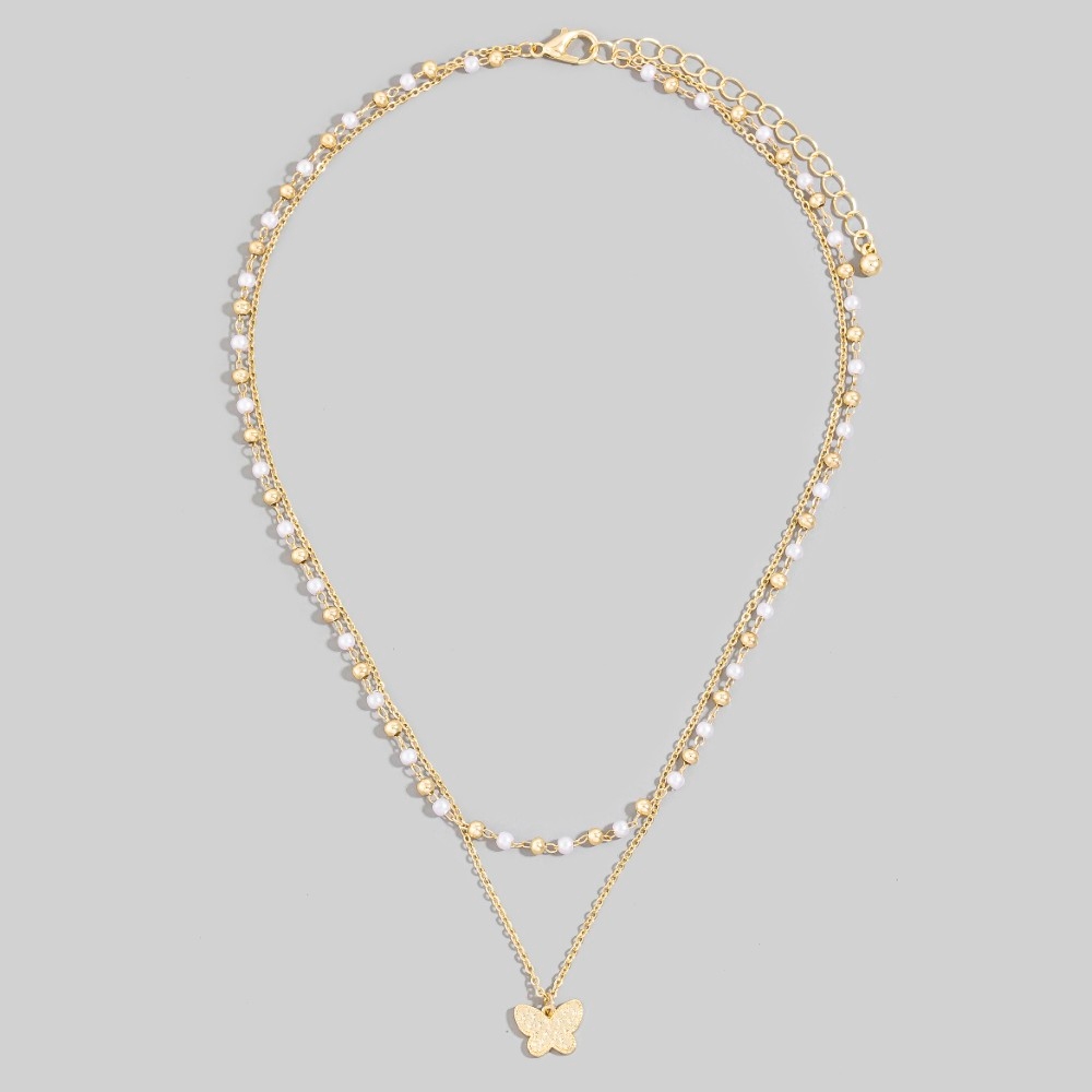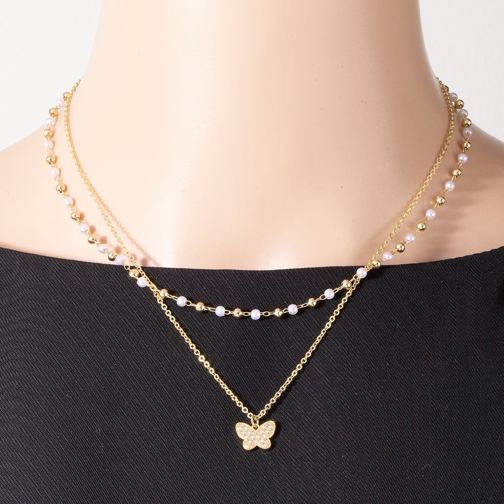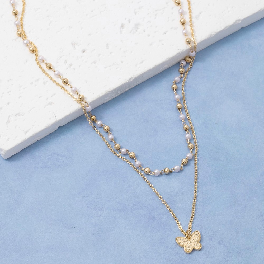 • Sleek, modern, and always stylish, this pendant necklace radiates a sleek butterfly pendant mixed layered chains necklace design. Unleash the potential of your wardrobe with this versatile pendant necklace, ensuring a touch of elegance in every ensemble. Available in GWT. This item is sold in packs of 1.