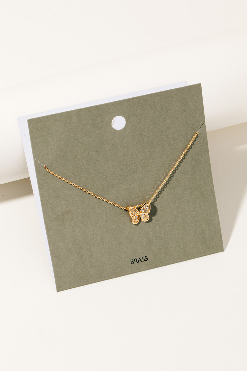 Gold Dipped Pave Butterfly Pendant Necklace