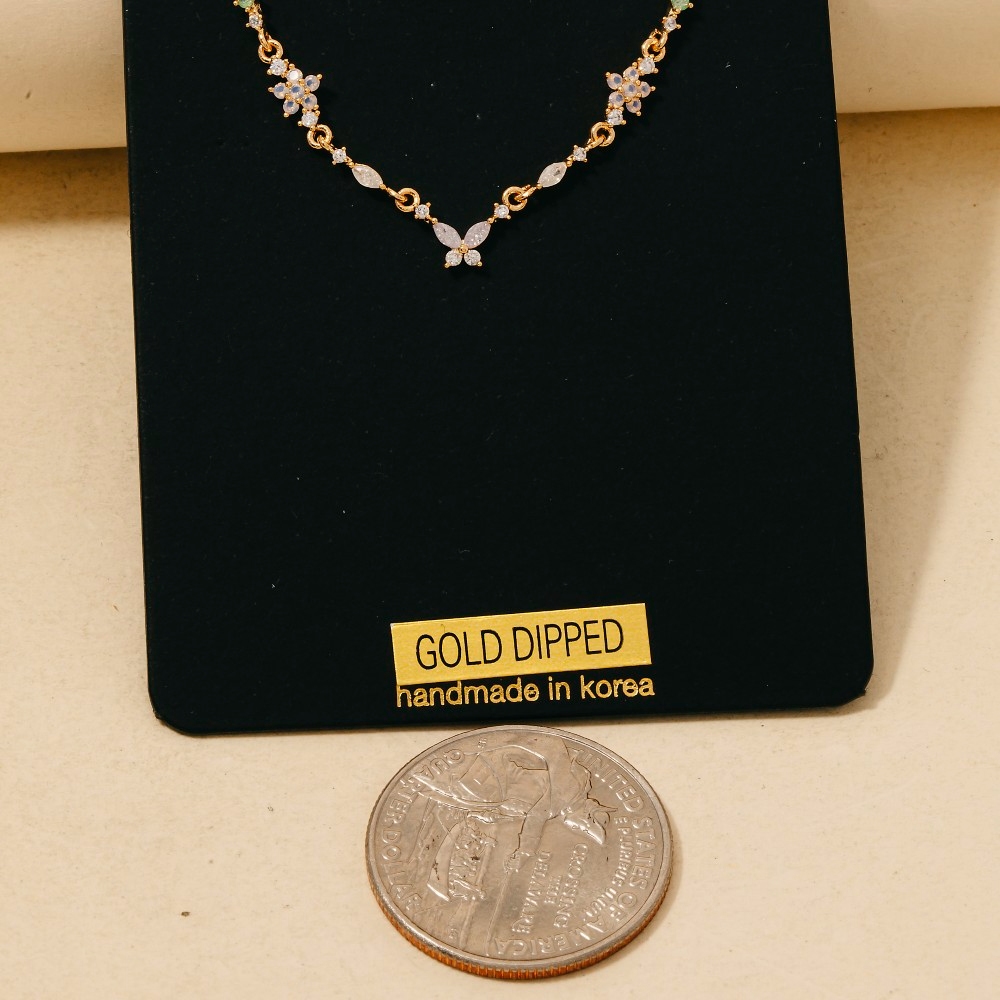Floral Cz Butterfly Pendant Necklace
