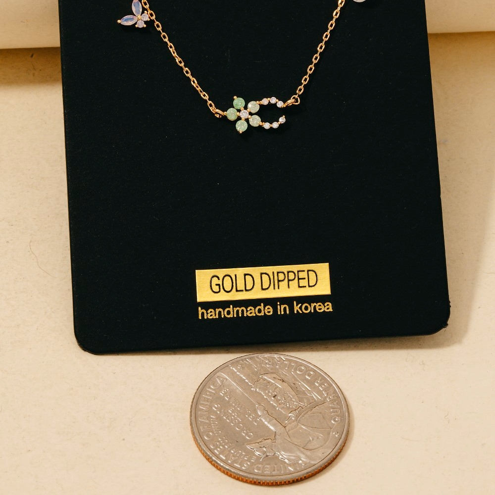 Cz Enamel Butterfly Station Necklace