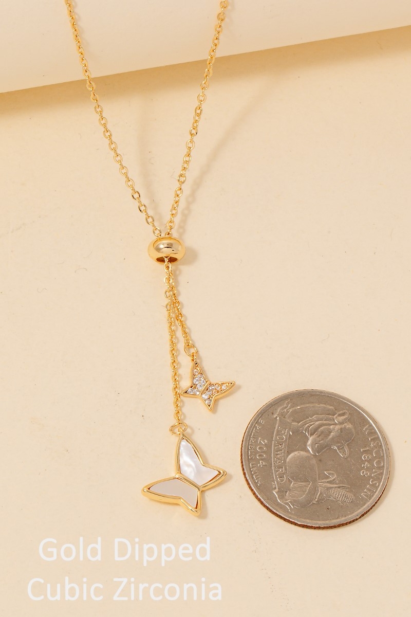 Gold Dipped Mixed Cz Butterflies Y Chain Necklace
