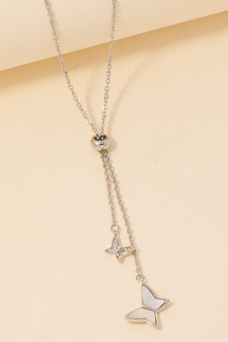 Stainless Steel And Resin Double Butterflies Y Chain Necklace
