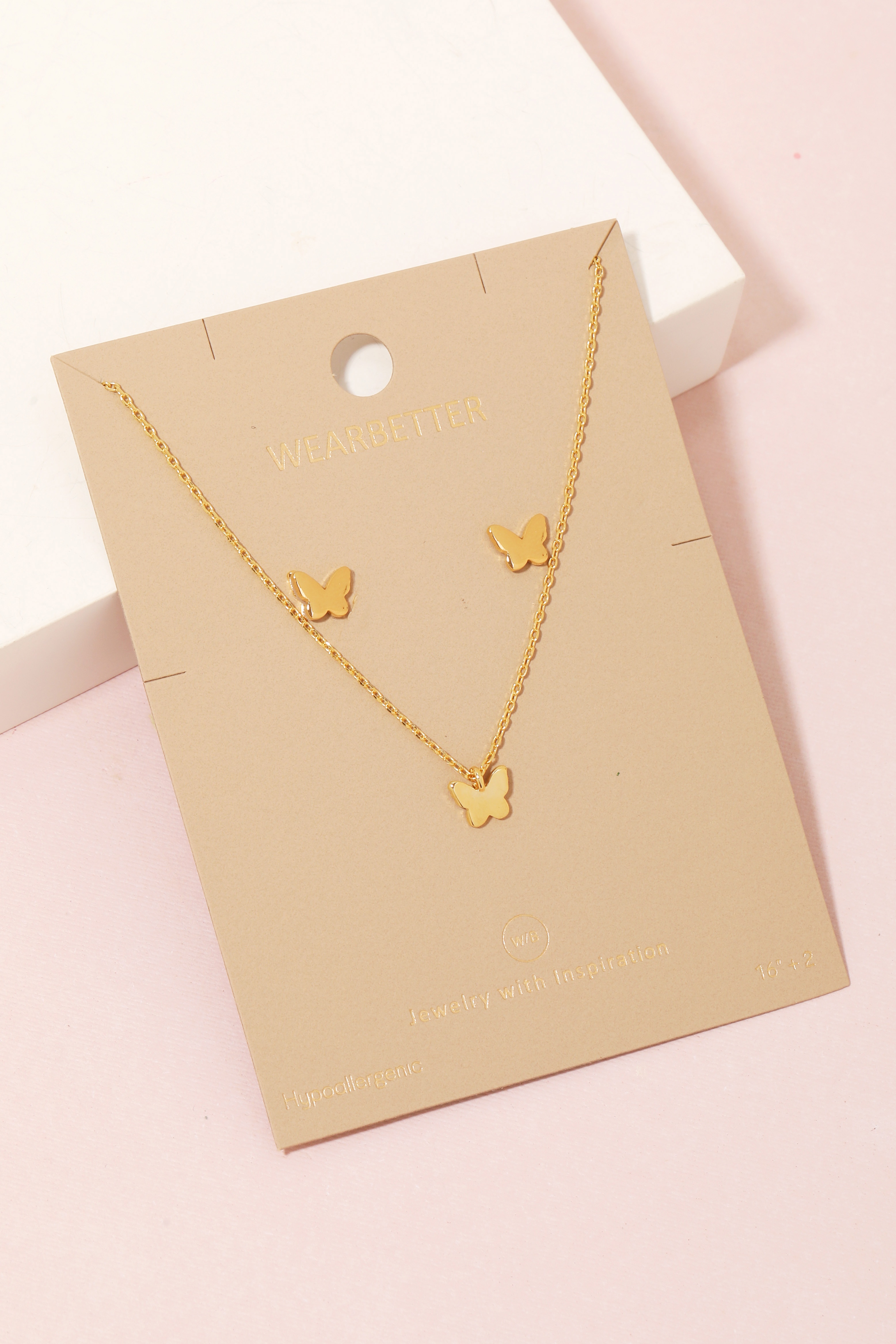 • Perfect for any fashion-forward individual, this trending necklace presents a striking mini butterfly pendant necklace set design. This item is the perfect way to add some texture and interest to any outfit. Available in G. This item is sold in packs of 1.