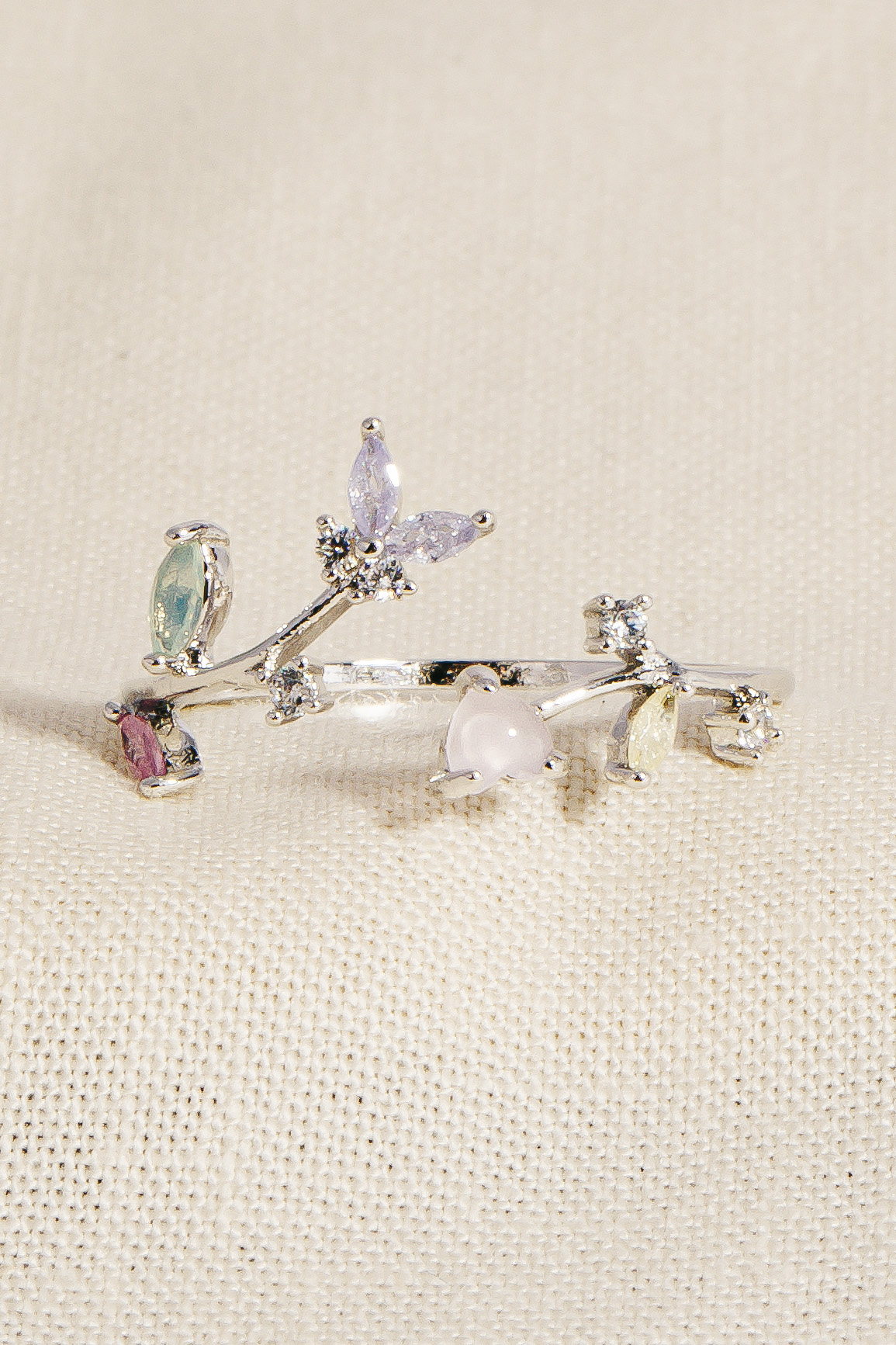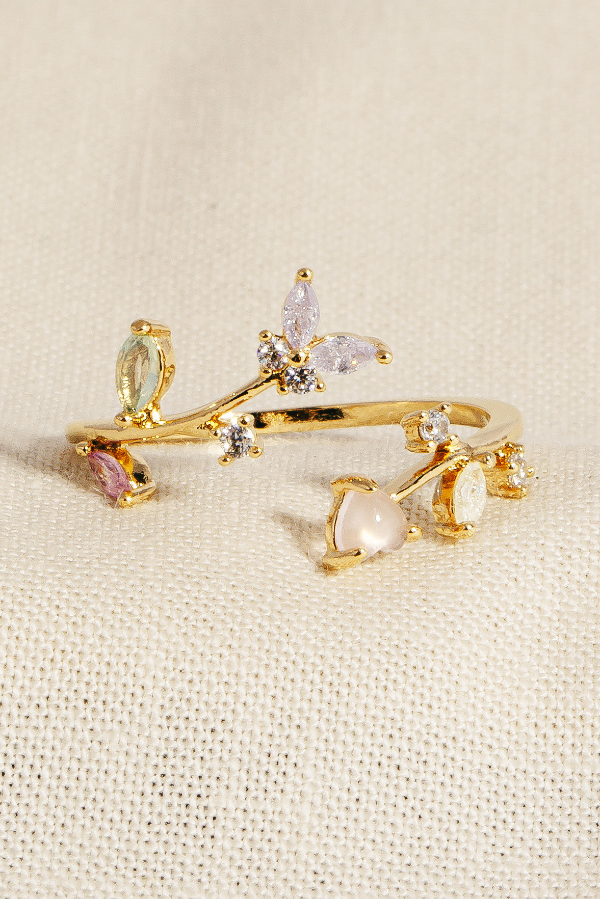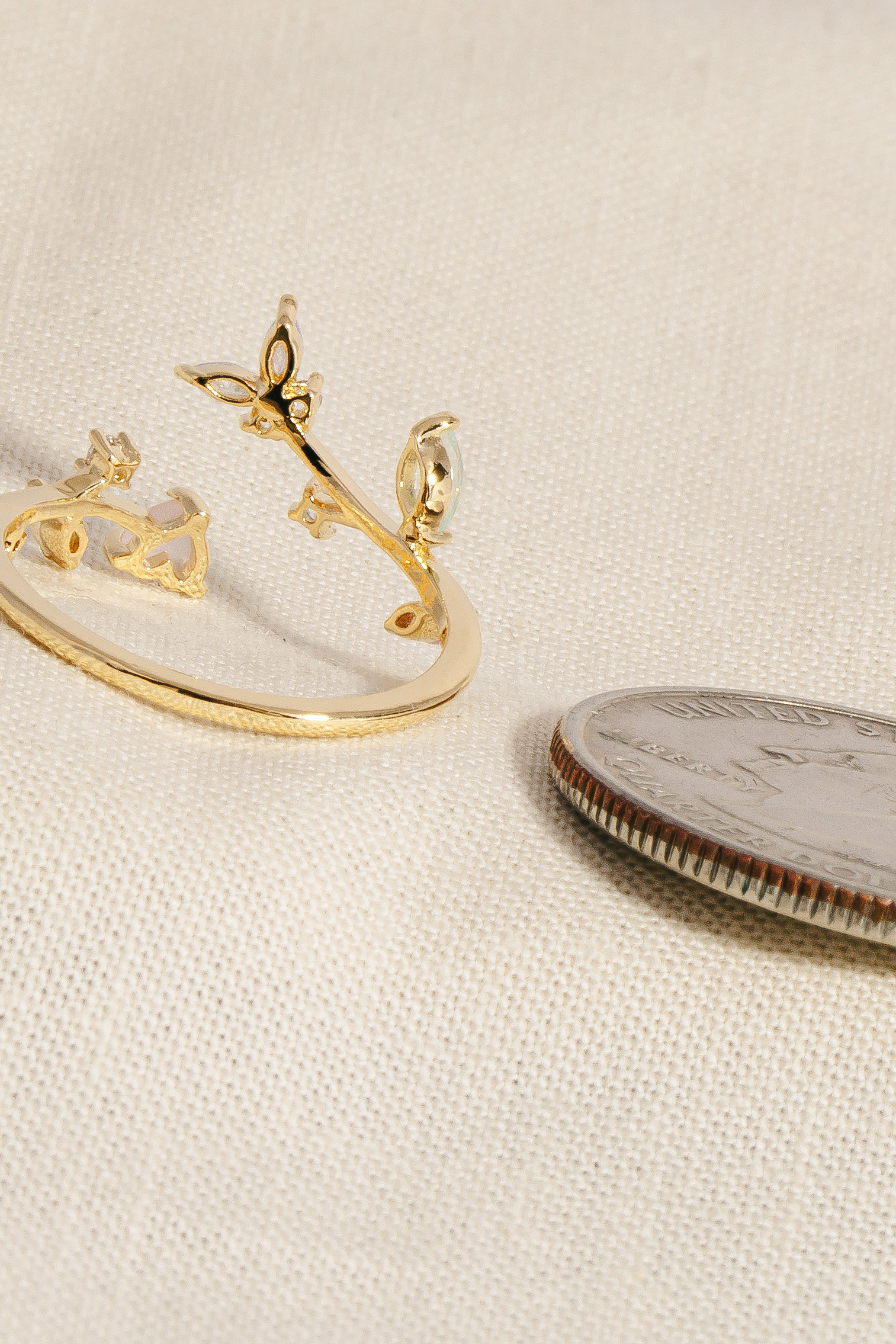 Gold Dipped Cz Opal Cluster & Butterfly Double Band Ring