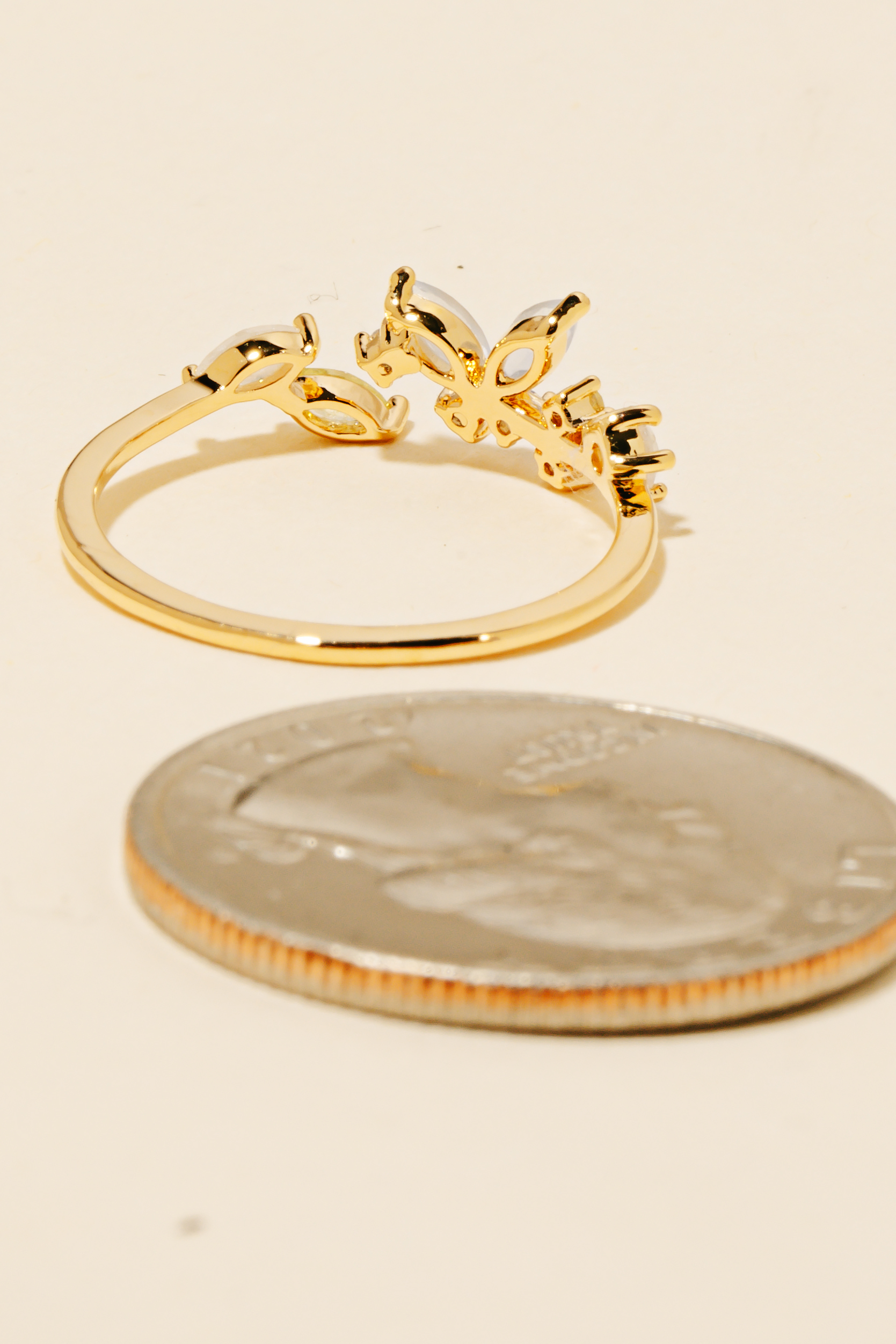 Gold Dipped Cz Butterfly Leaf Ring