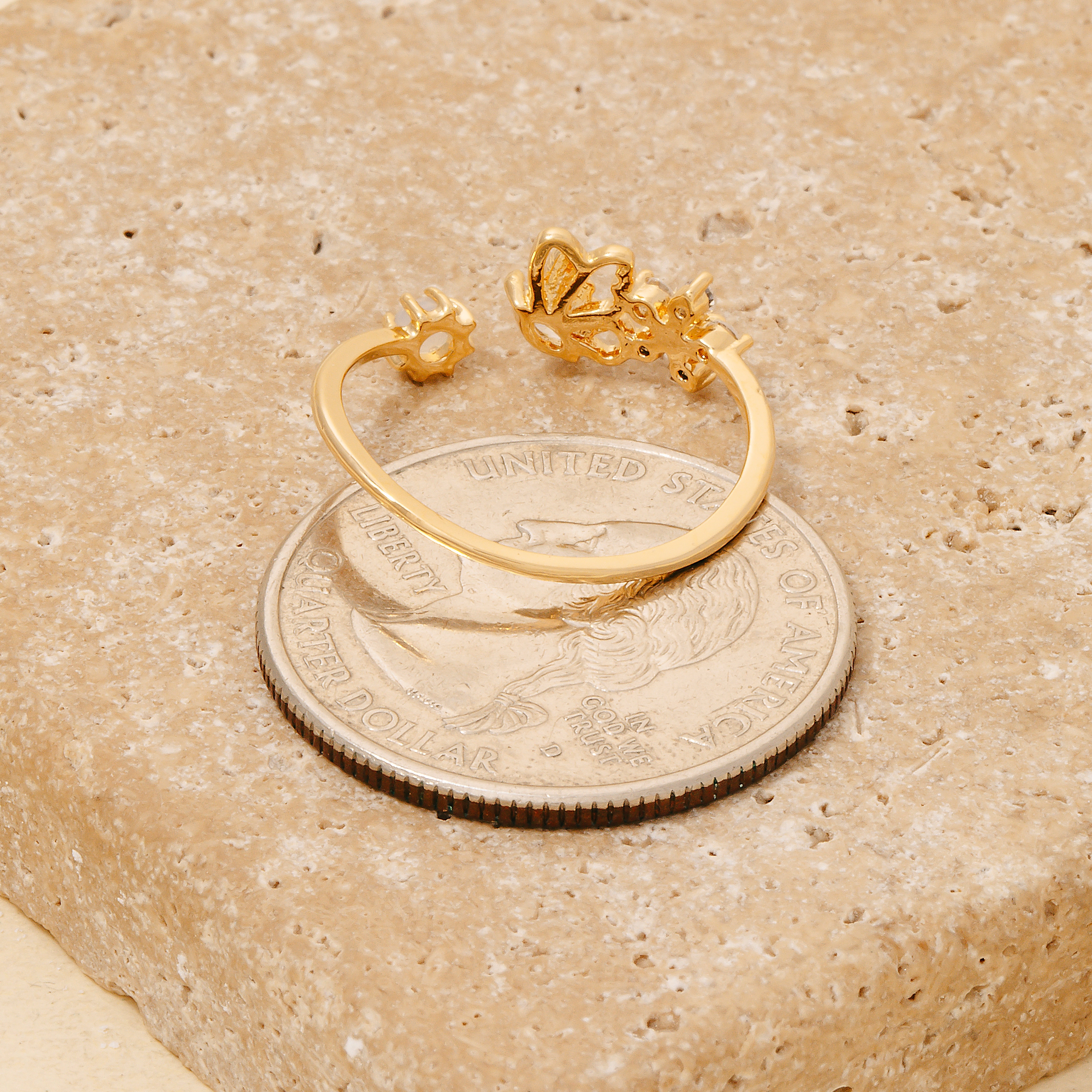 Gold Dipped Cz Butterfly And Heart Open Ring
