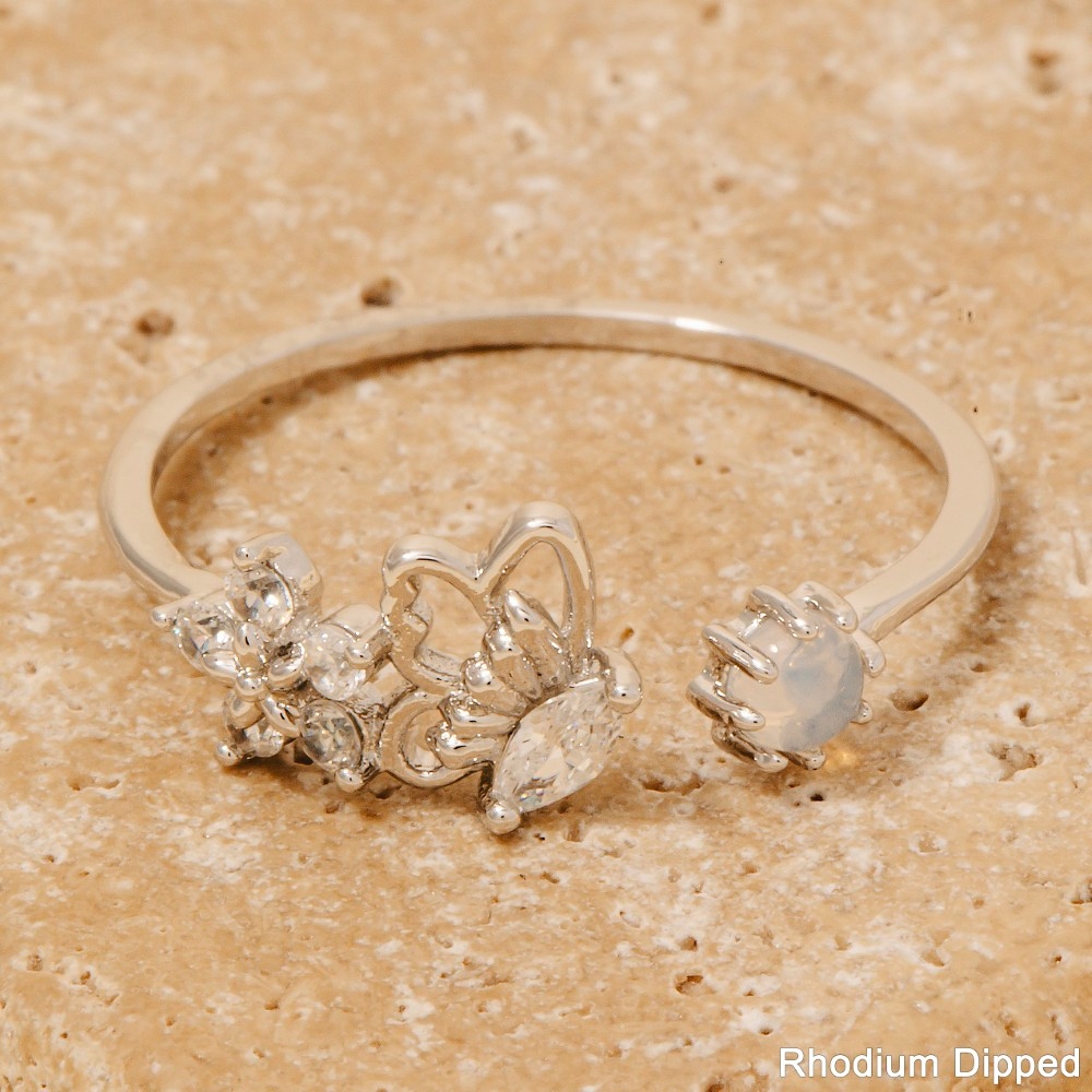 Gold Dipped Cz Opal Cluster & Butterfly Double Band Ring