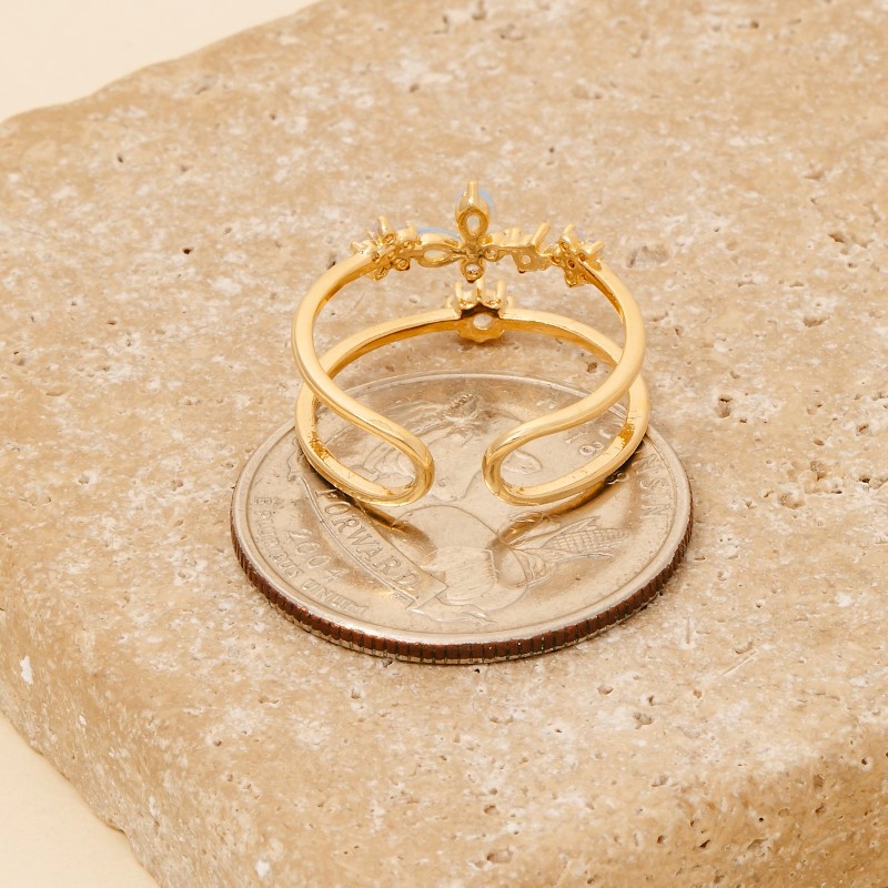 Gold Dipped Cz Opal Cluster & Butterfly Double Band Ring