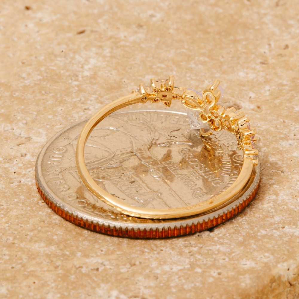 • Sleek and modern, this ring brings a one-of-a-kind gold dipped cubic zirconia flowers and butterfly open band design. This item is ideal for those who want to add some personality to their wardrobe without being too bold. Available in G. This item is sold in packs of 1.