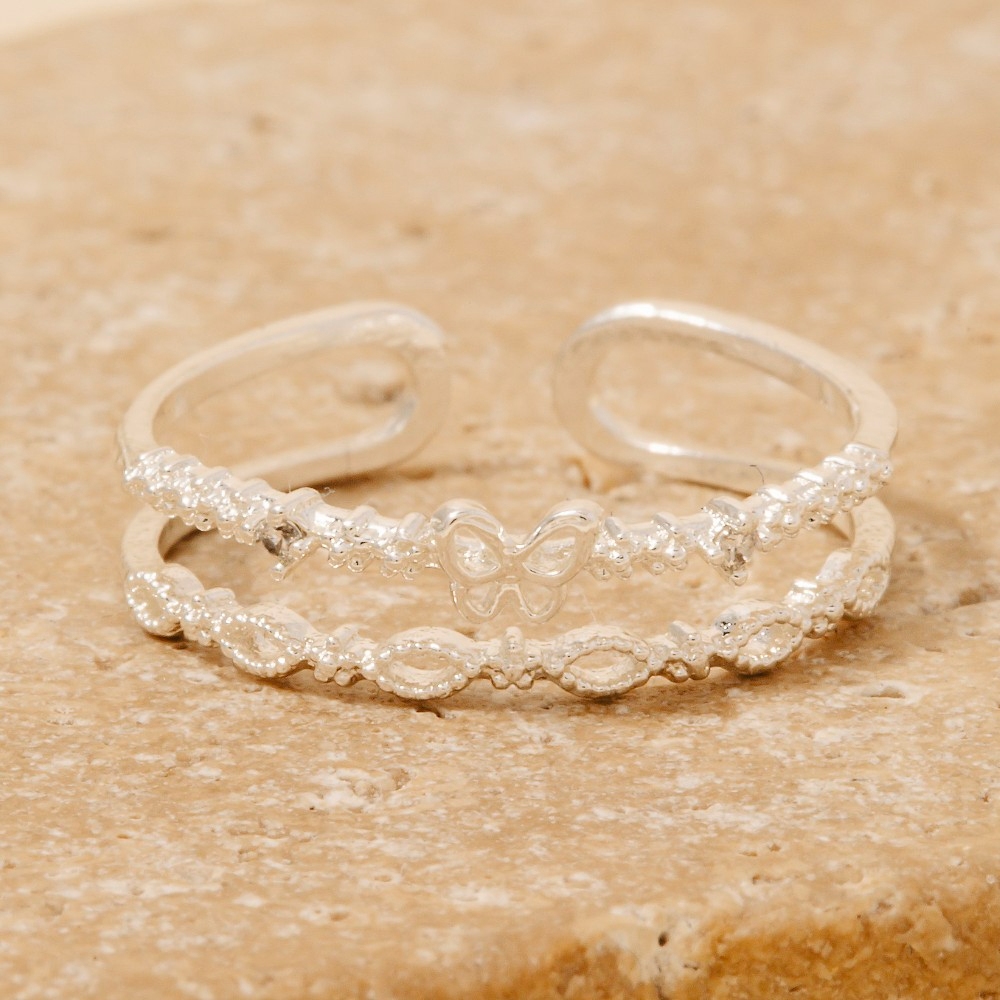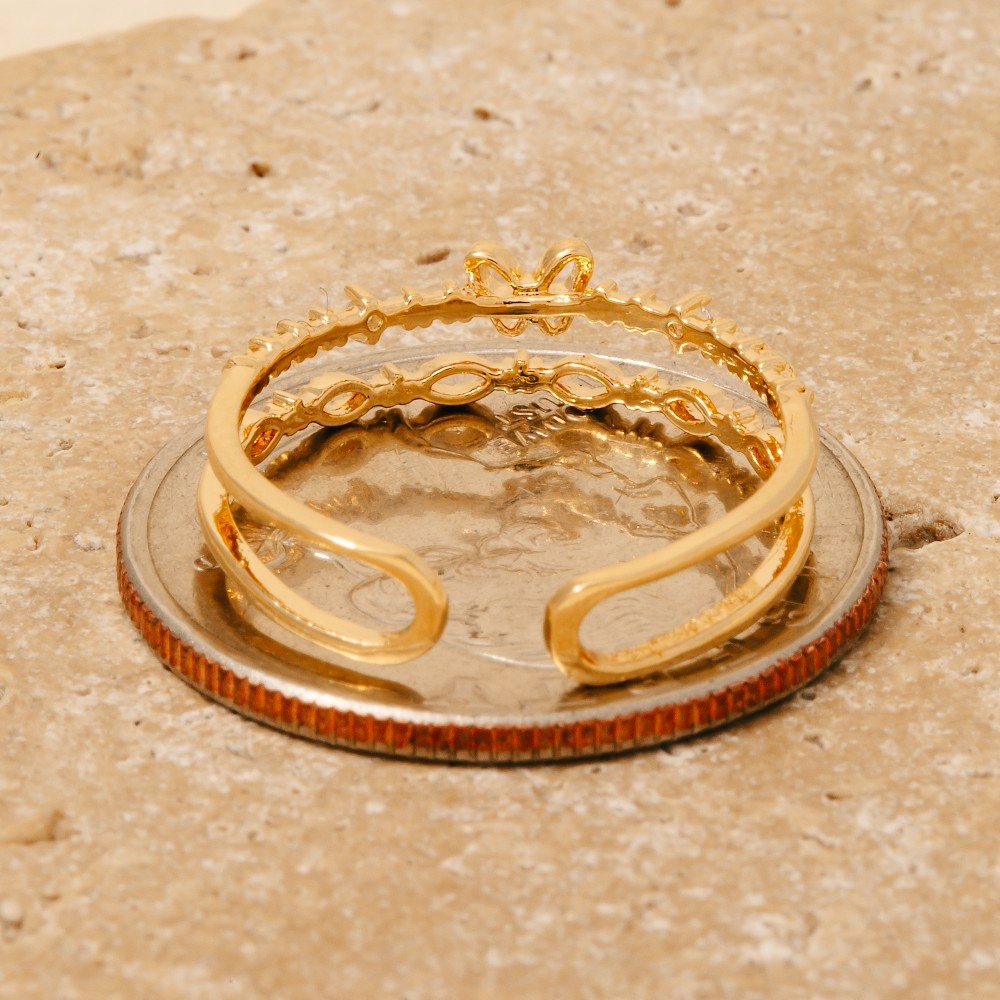Gold Dipped Cz Cluster & Butterfly Double Band Ring