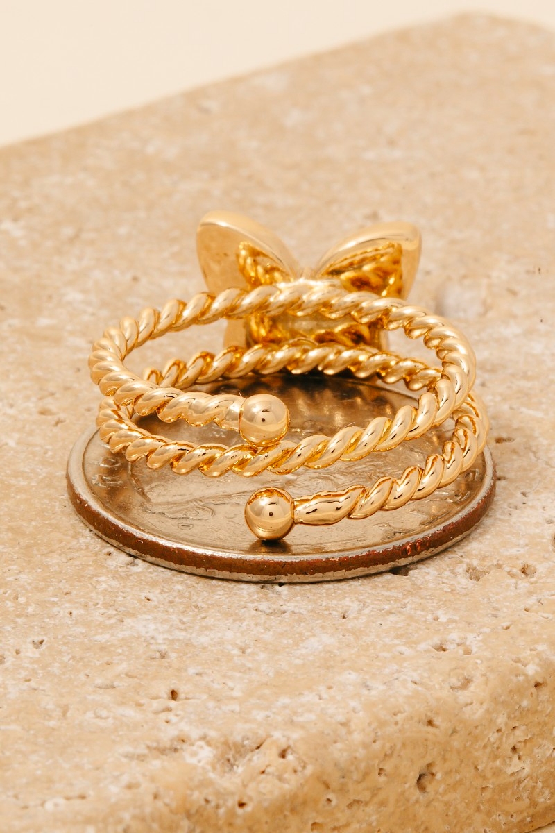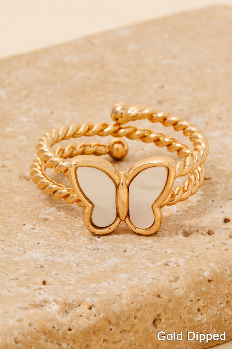 • This ring brings a unique gold dipped layered rope butterfly band style. Elevate your ensemble with this ring that effortlessly captures the essence of refined fashion.