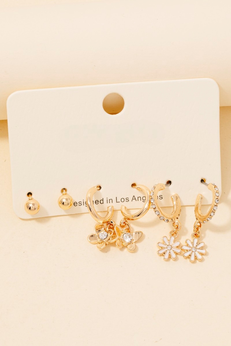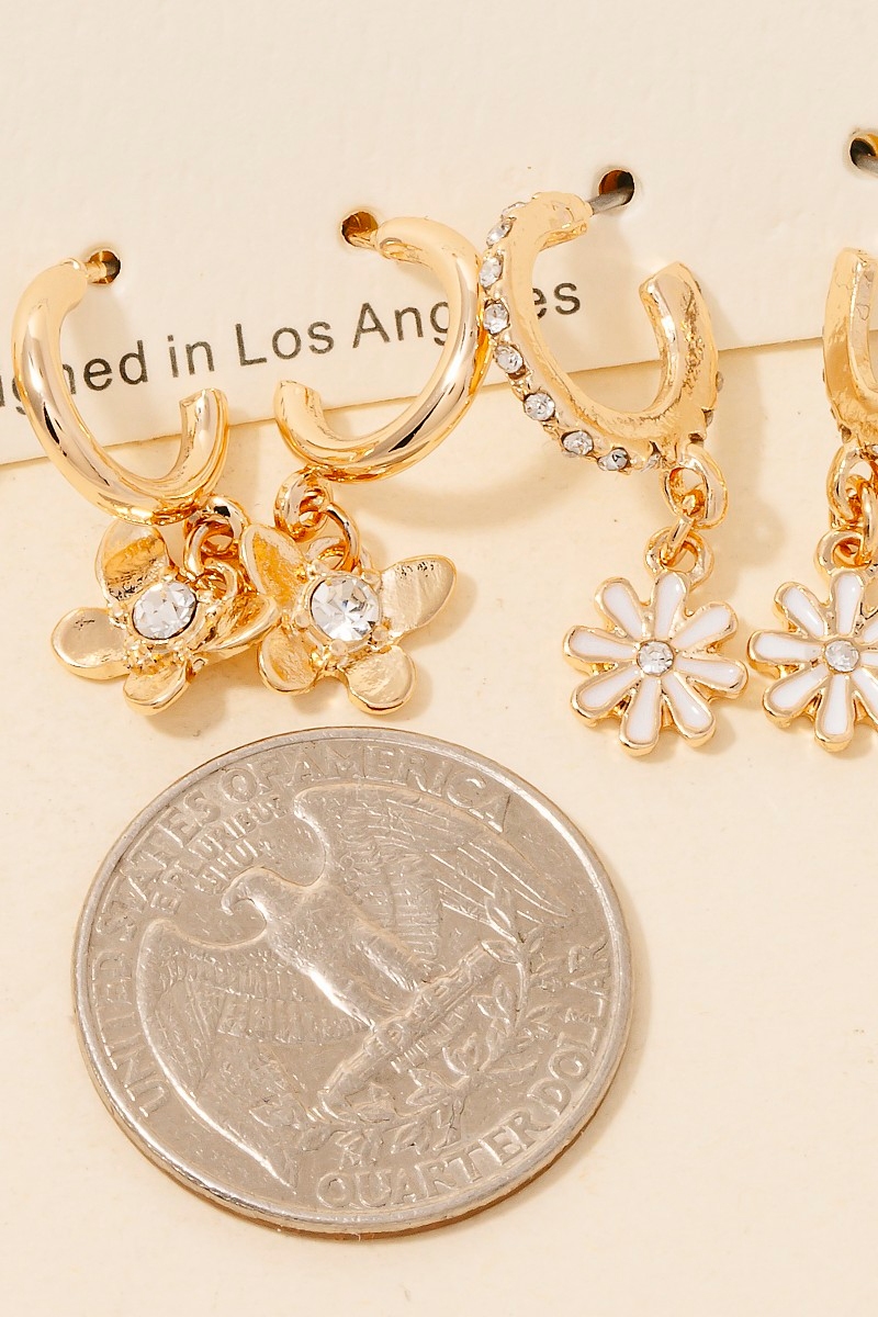 • This pair of hoop earrings showcases a timeless mixed butterfly and flowers set style. Embark on a journey of sartorial refinement as this pair of hoop earrings effortlessly complements your fashion sense.