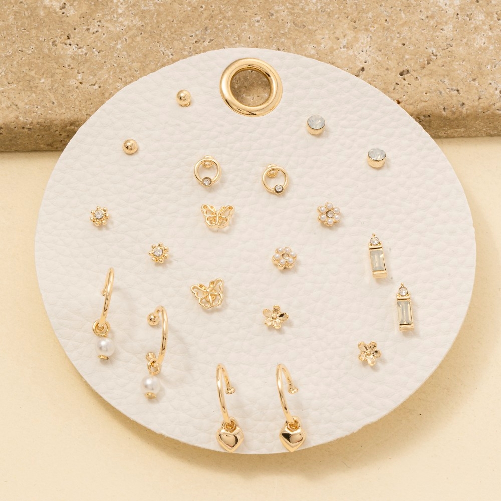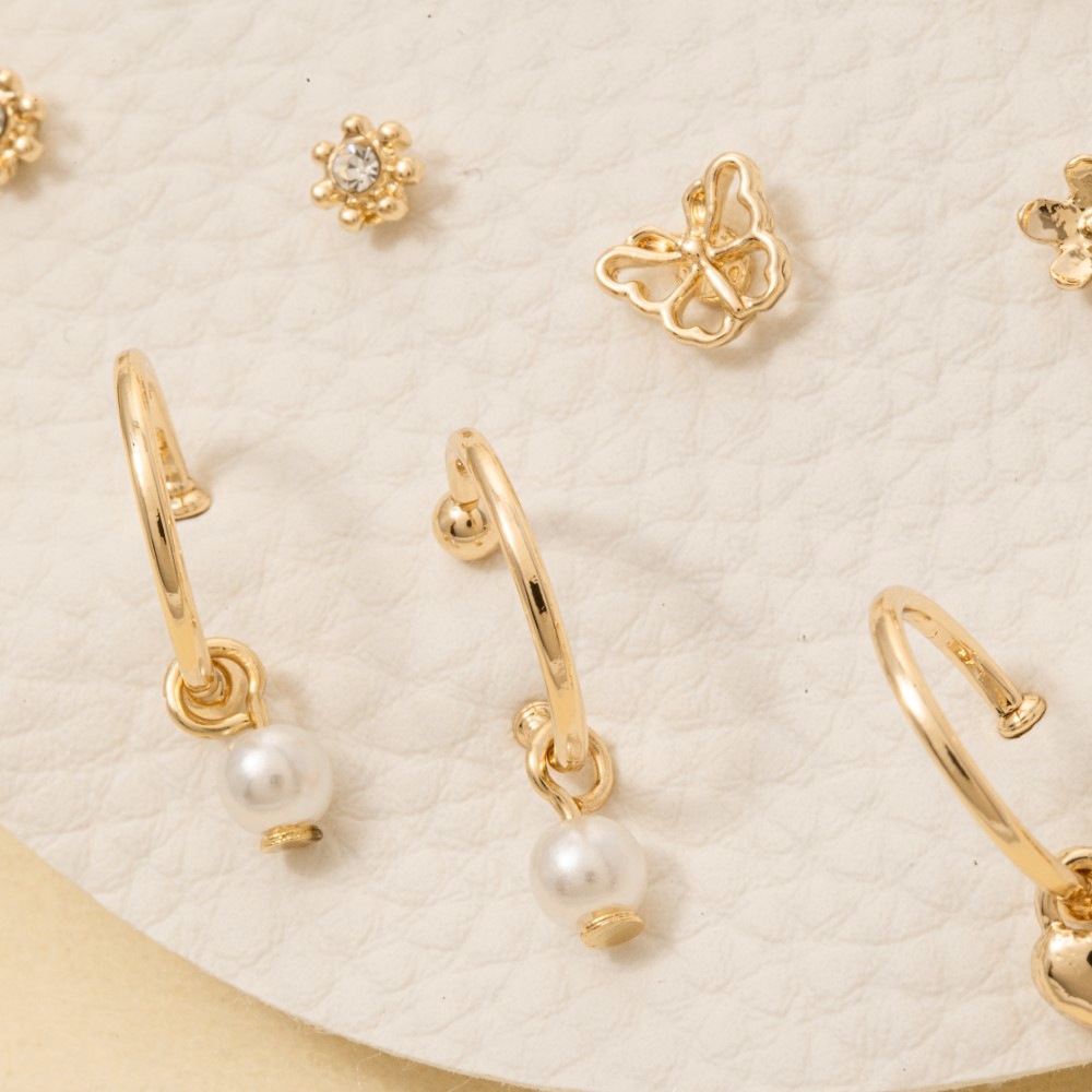 • This piece is both timeless and on-trend, this pair of earrings emanates an elegant ten pair butterfly flower set design. The perfect way to complete any outfit, whether you're dressing up or keeping it casual. Available in GDOWH. This item is sold in packs of 1.