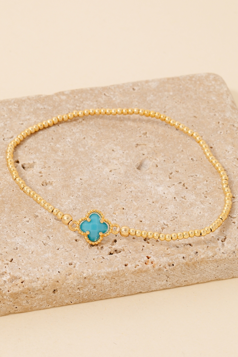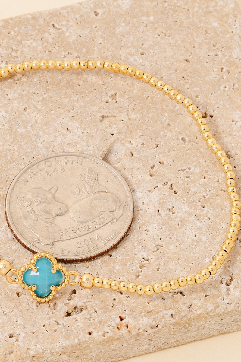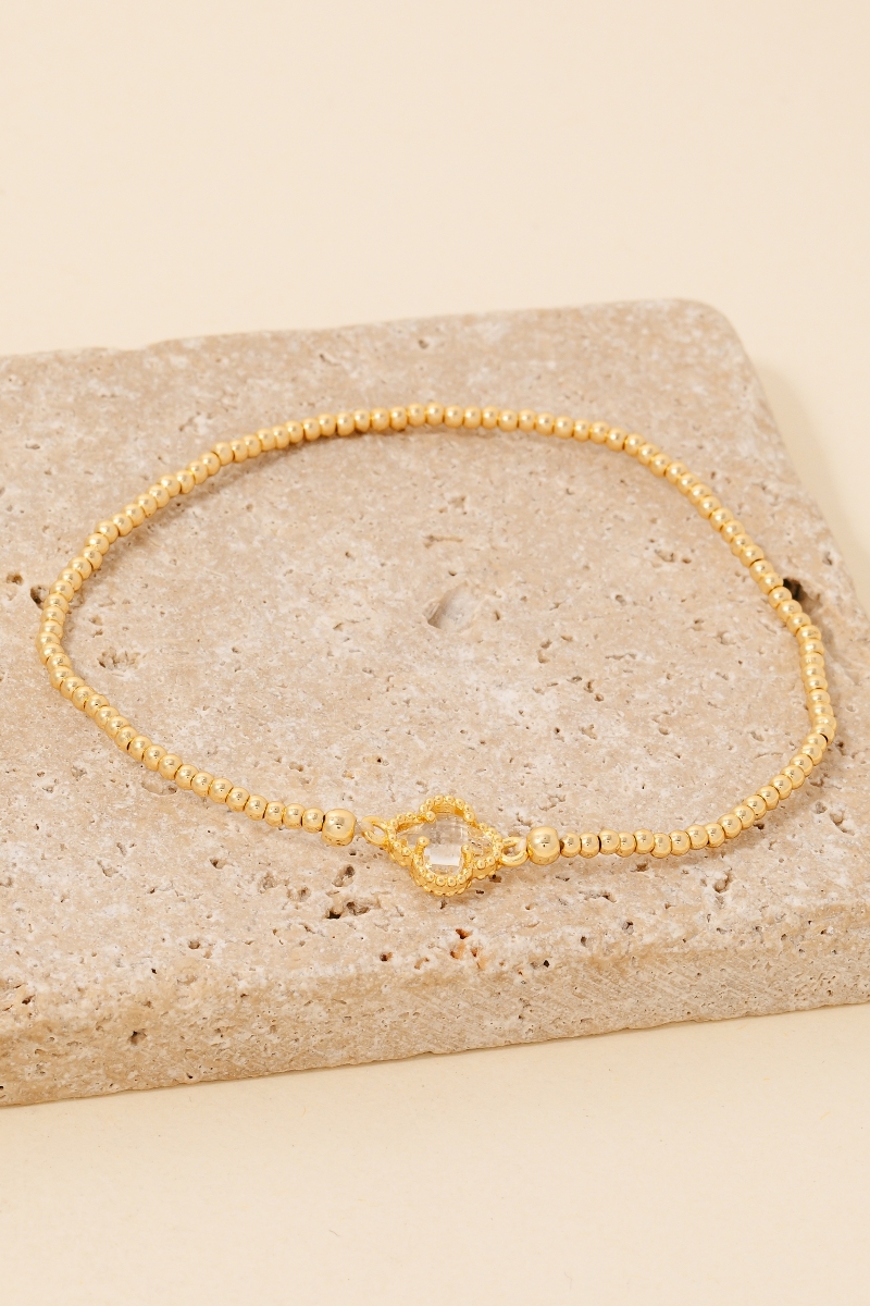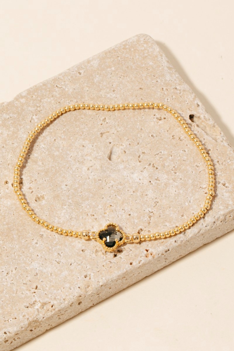 Rhinestone Clover Charm Faceted Beaded Bracelet