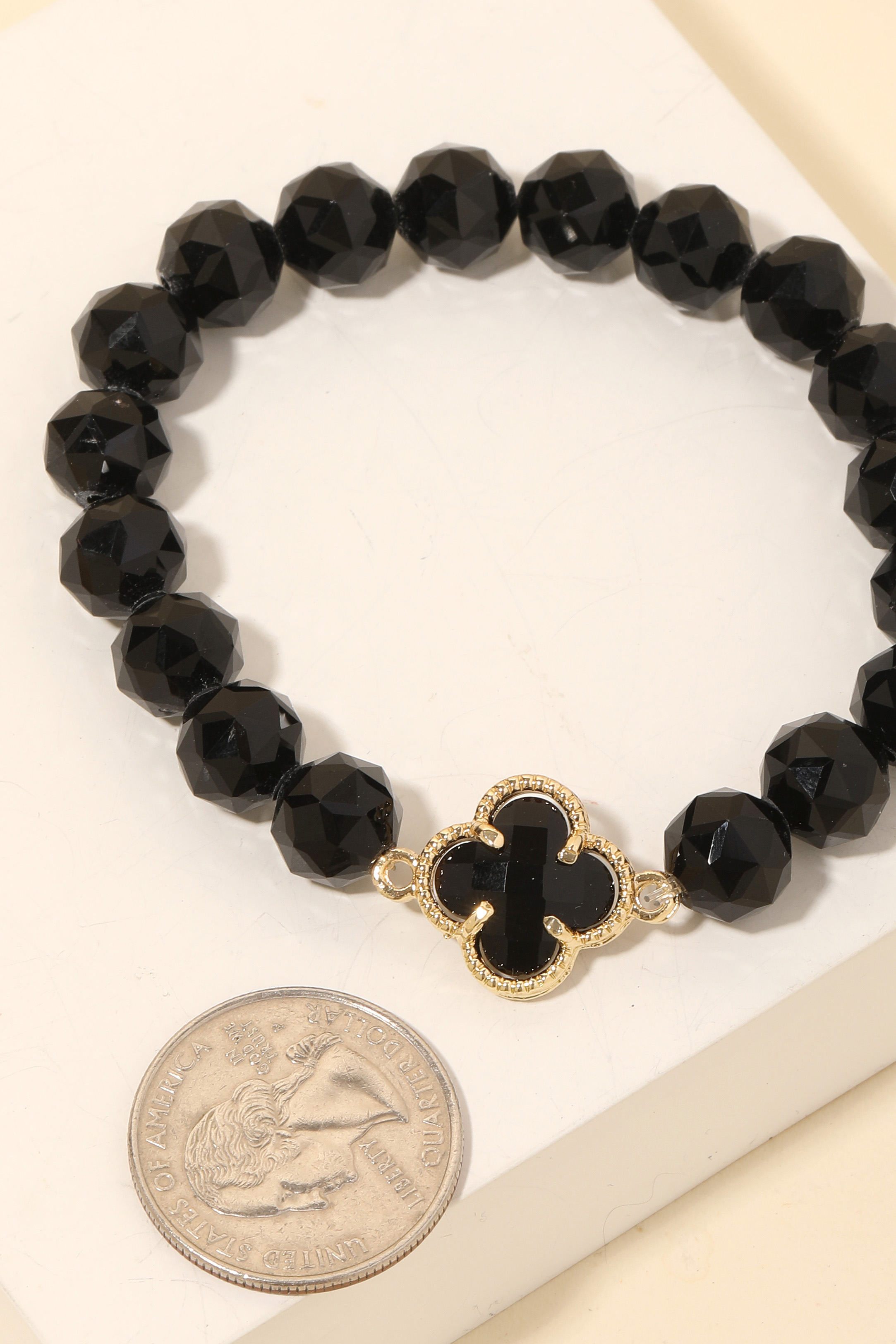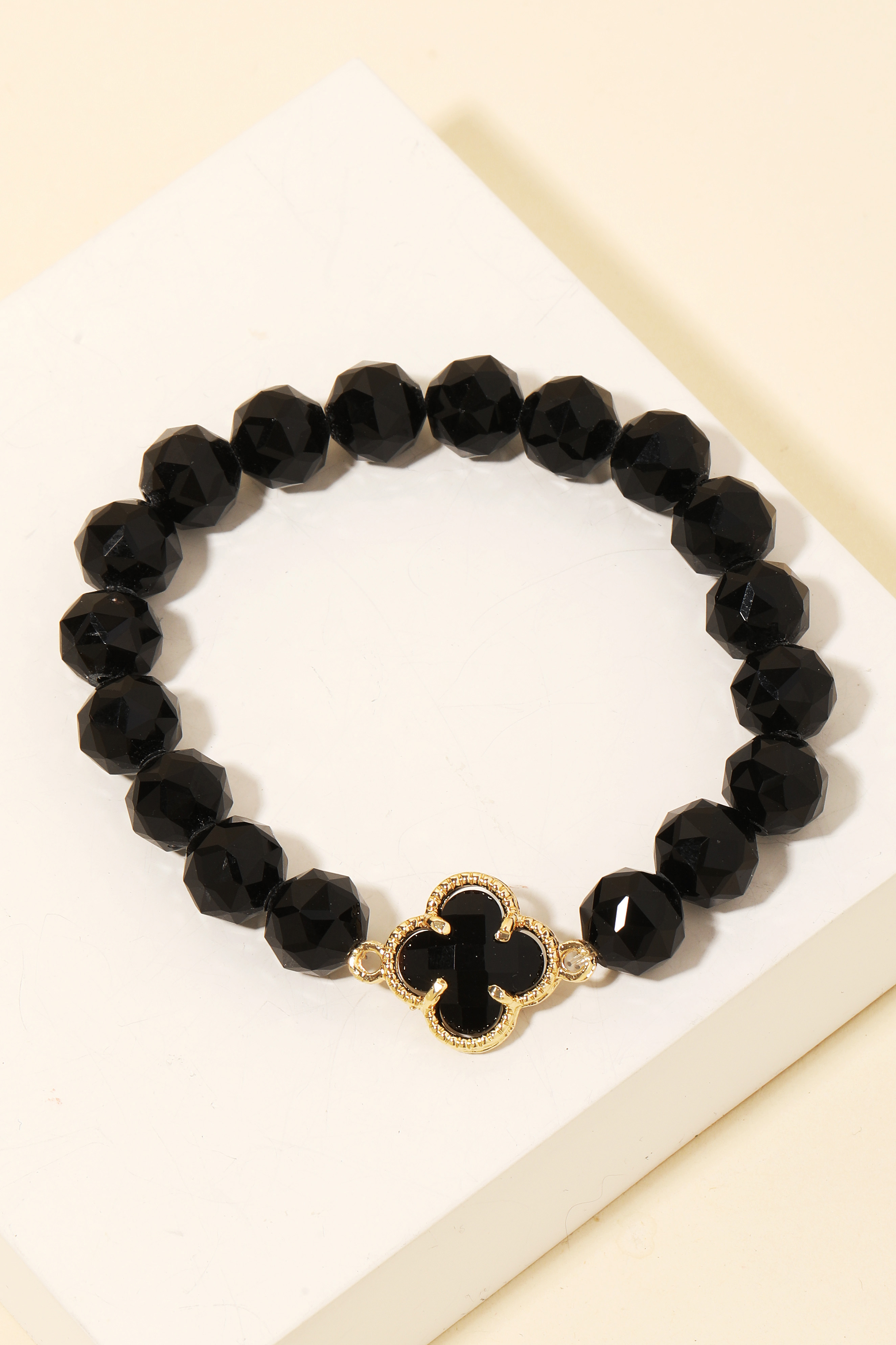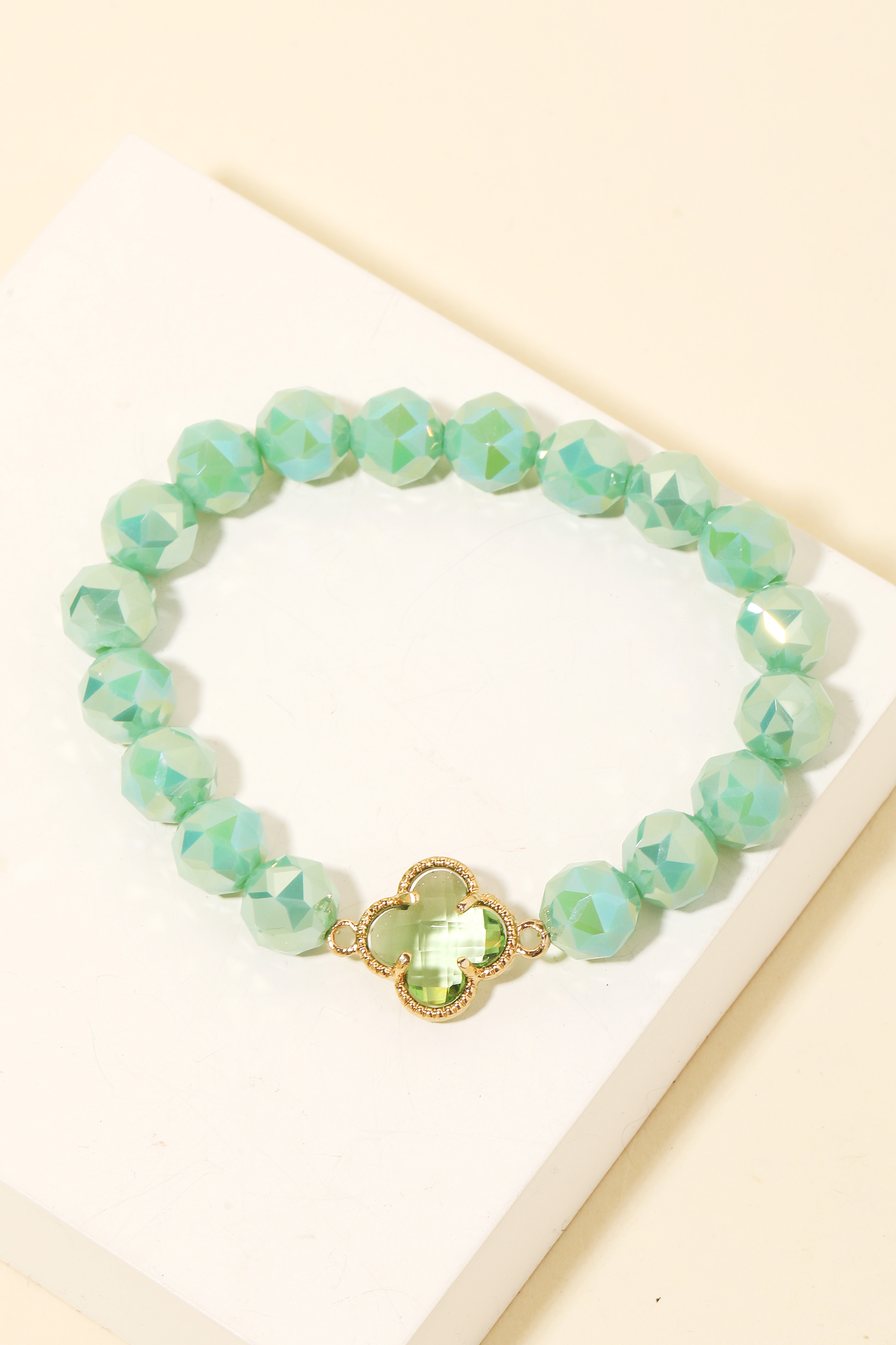 Faceted Glass Clover And Brushed Steel Beads Bracelet
