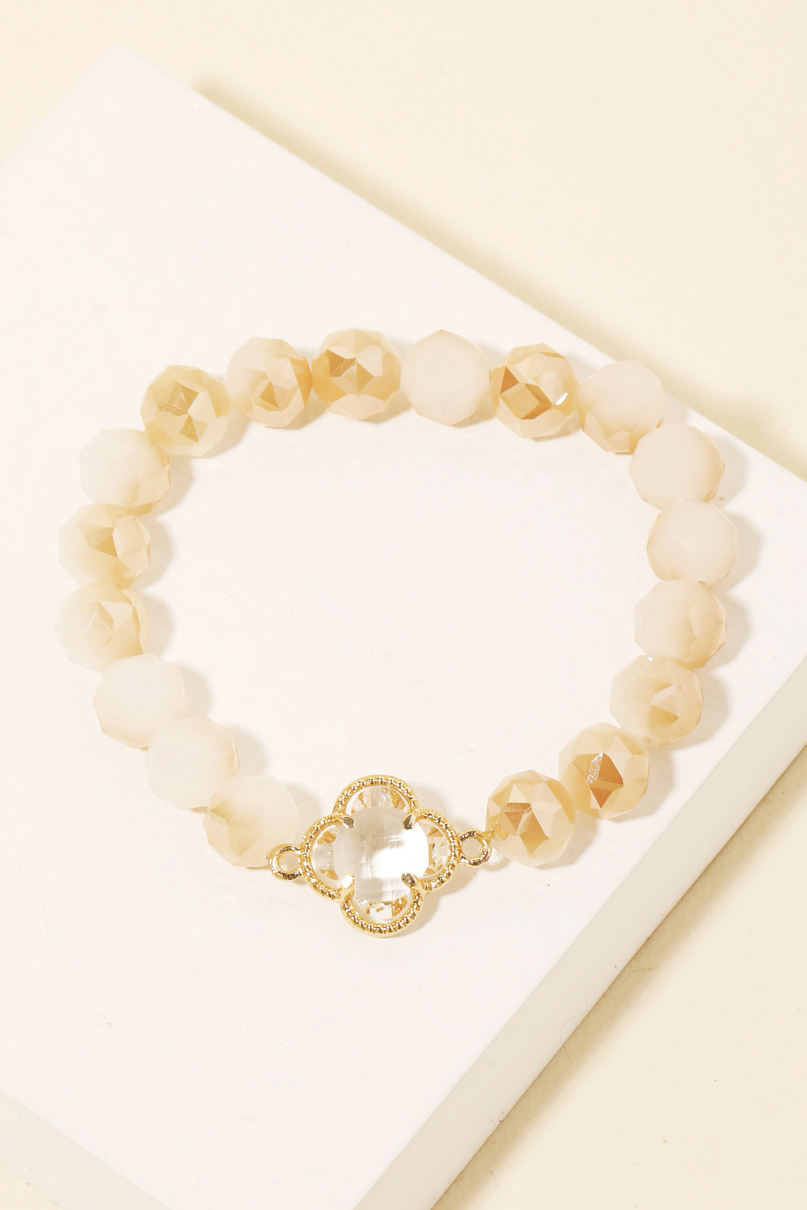Gold Dipped Faceted Clear Glass Clover Charm Beaded Bracelet