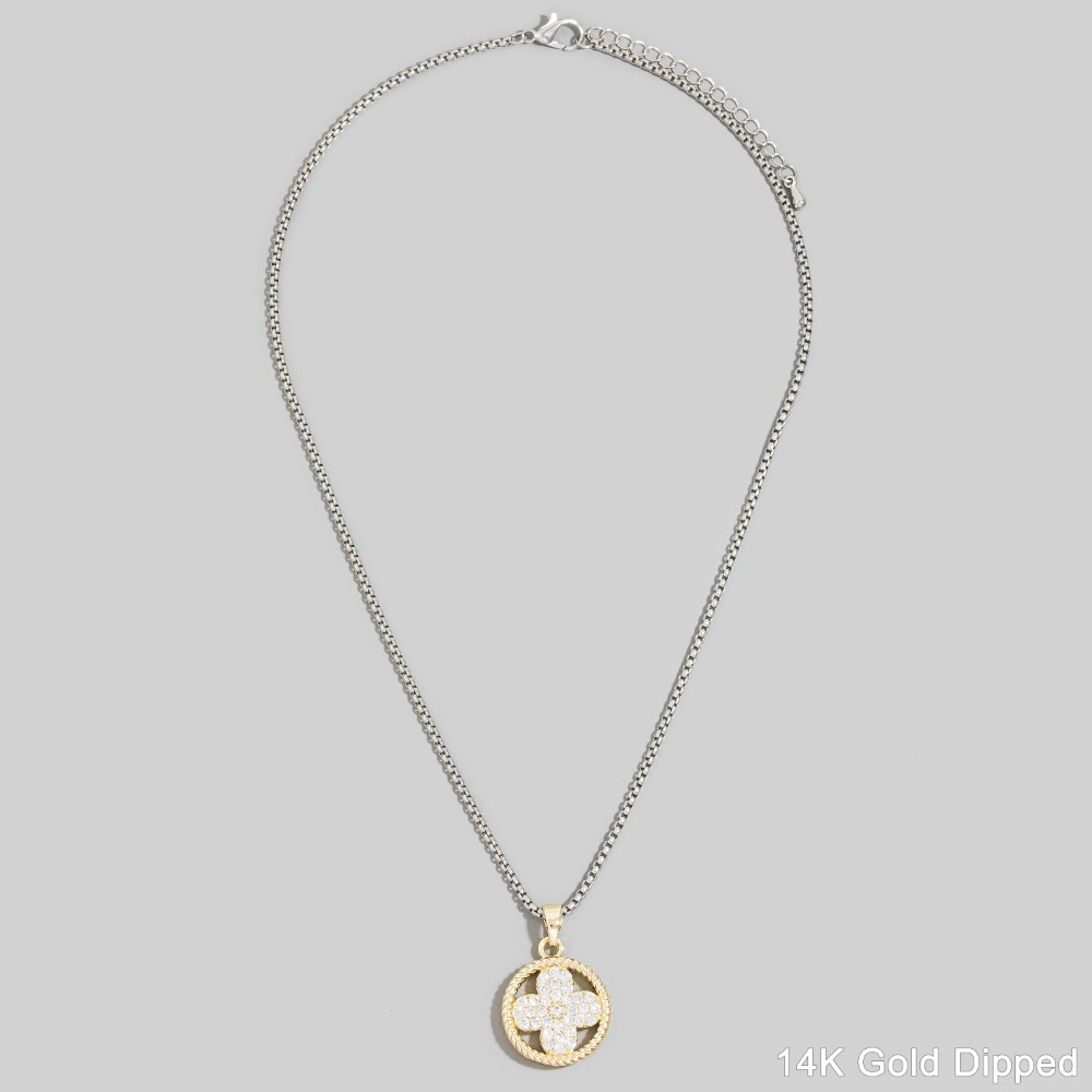 Gold Dipped Two Tone Cz Pave Clover Pendant Necklace