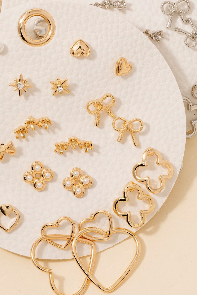 • A stunning addition to any jewelry collection, this set of earrings reveals an intricate bow clover heart star earrings set design. Master the art of accessorizing with this versatile set of earrings, a key element for achieving a chic and polished look. Available in GDCRM and RHCRM. This item is sold in packs of 1.