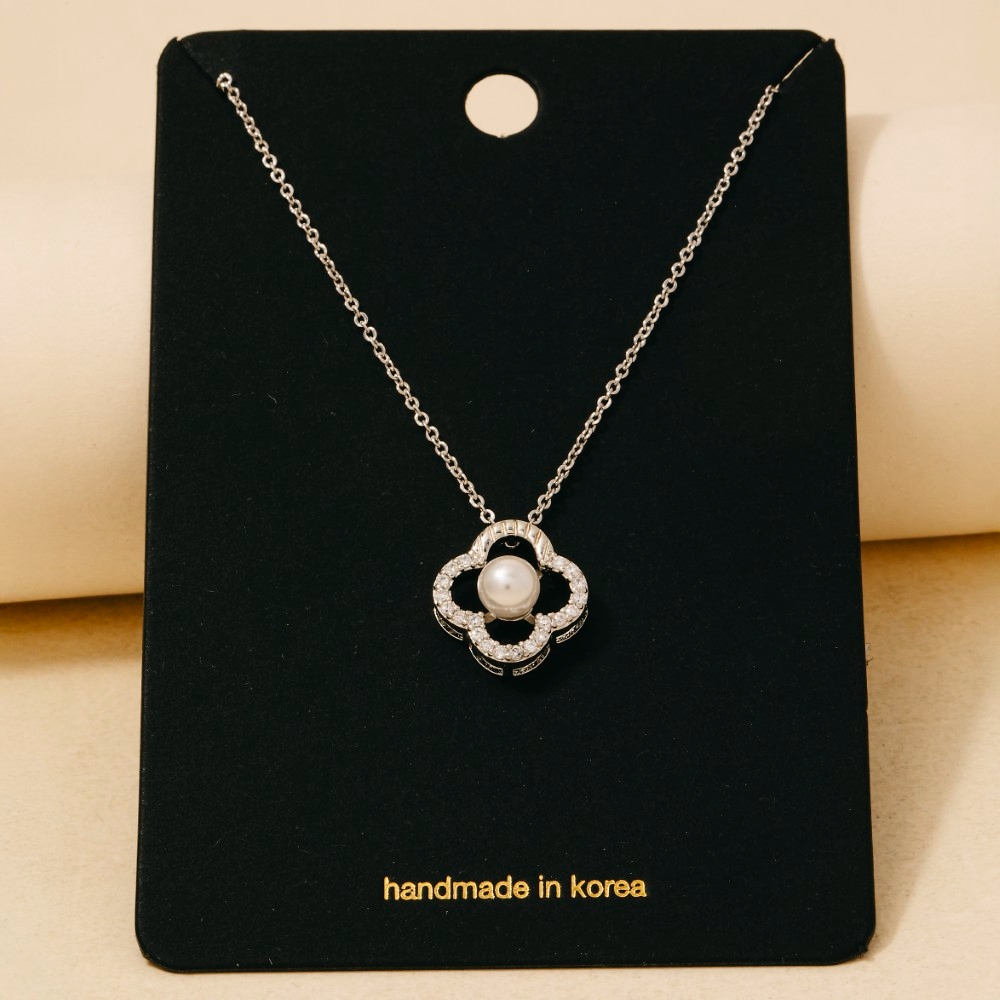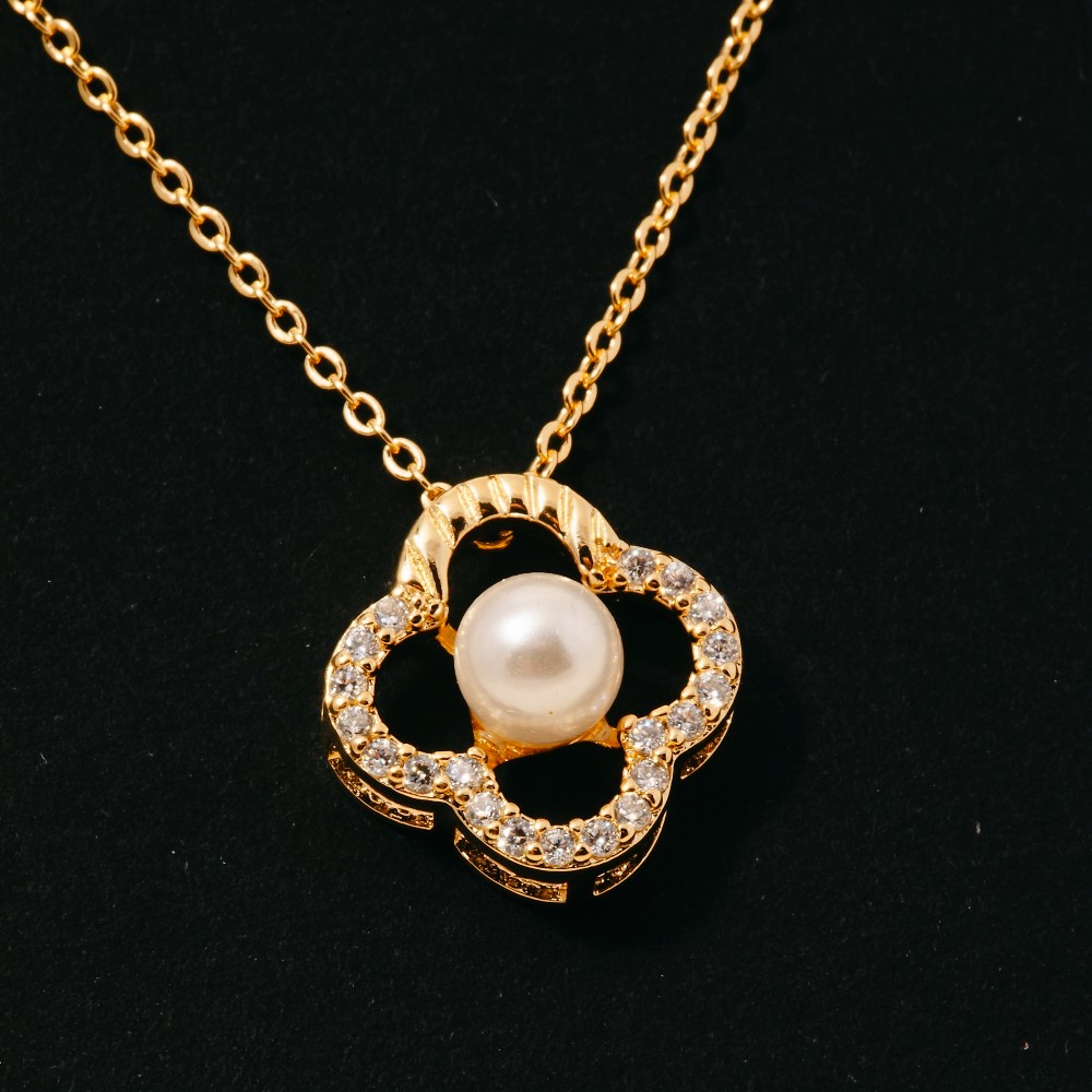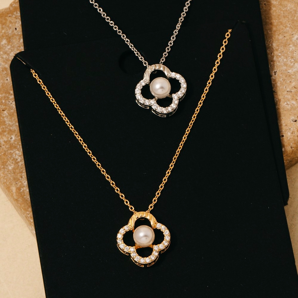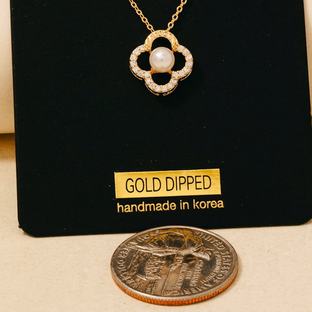 Chic, sophisticated, and always in style, this necklace adds a distinctive gold dipped cubic zirconia set pearl clover pendant design. This item is perfect for adding some color and vibrancy to any outfit. Available in G, S. This item is sold in packs of 1.