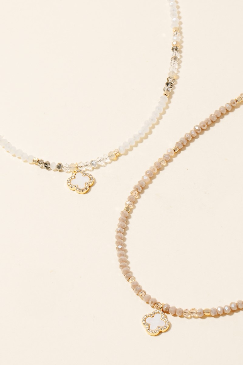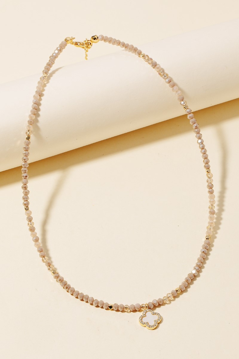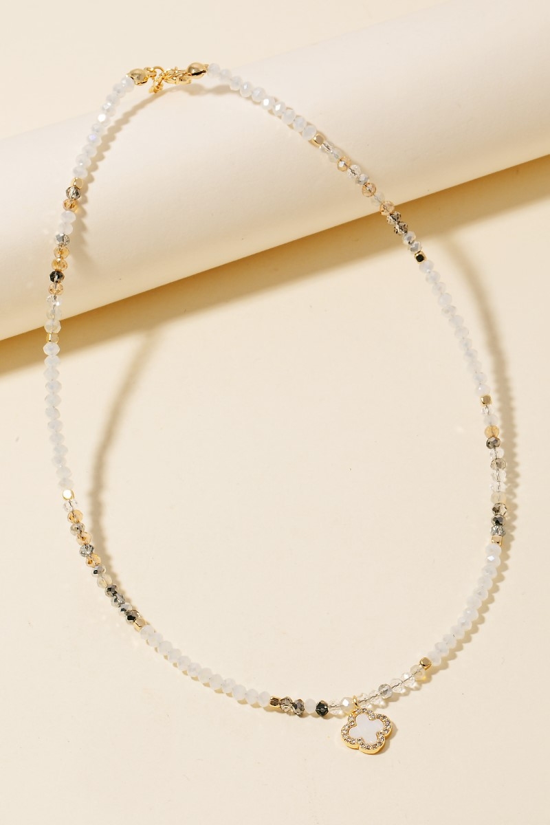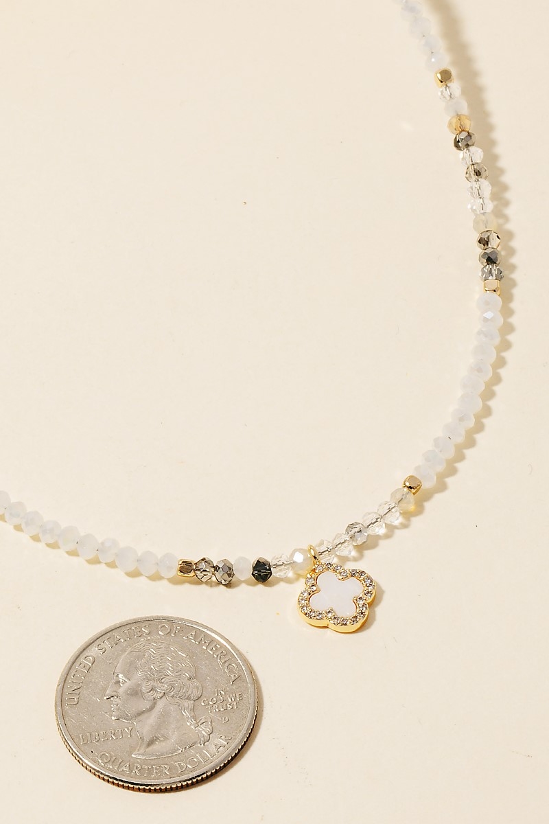 This piece is designed to be both stylish and functional, this necklace includes a stunning cz and clover pendant faceted beaded design. This item is ideal for those who want to add some personality to their wardrobe without being too bold. Available in GDMPK, GDMWH. This item is sold in packs of 1.