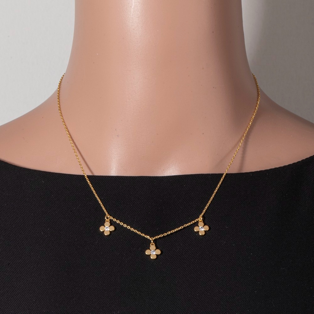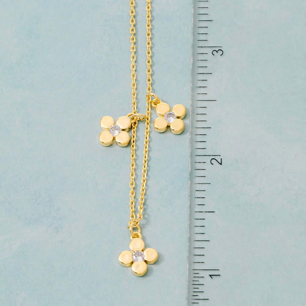 - Effortlessly elevate your outfit, this chain necklace offers a remarkable gold dipped cubic zirconia clover charms design. This item is ideal for those who want to add some personality to their wardrobe without being too bold. Available in GDCRY, RHCRY. This item is sold in packs of 1.