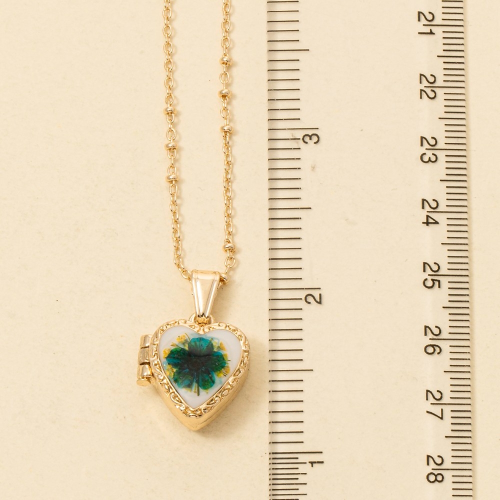 • Effortlessly stylish and always on-trend, this pendant necklace introduces an exceptional pressed flower heart locket design. Add some personality to your outfit with this stylish pendant necklace. Available in GDBLE, GDPNK. This item is sold in packs of 1.