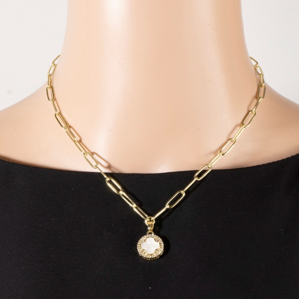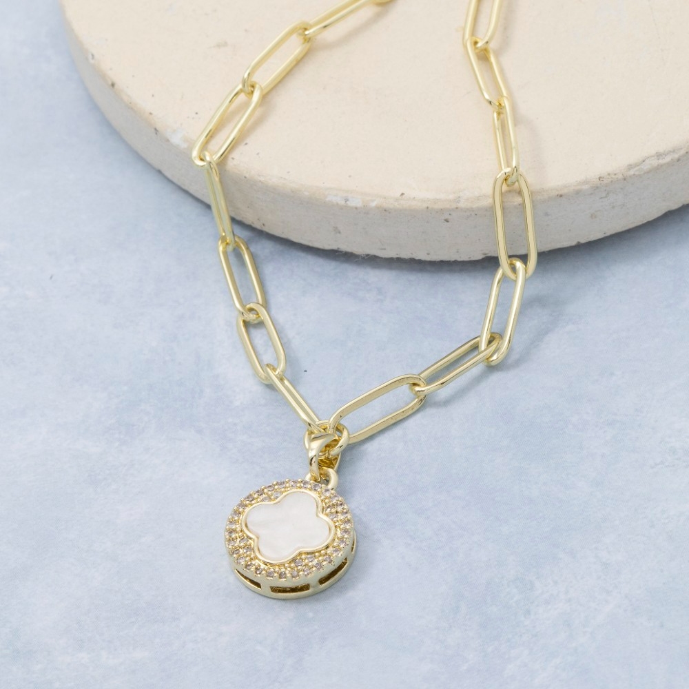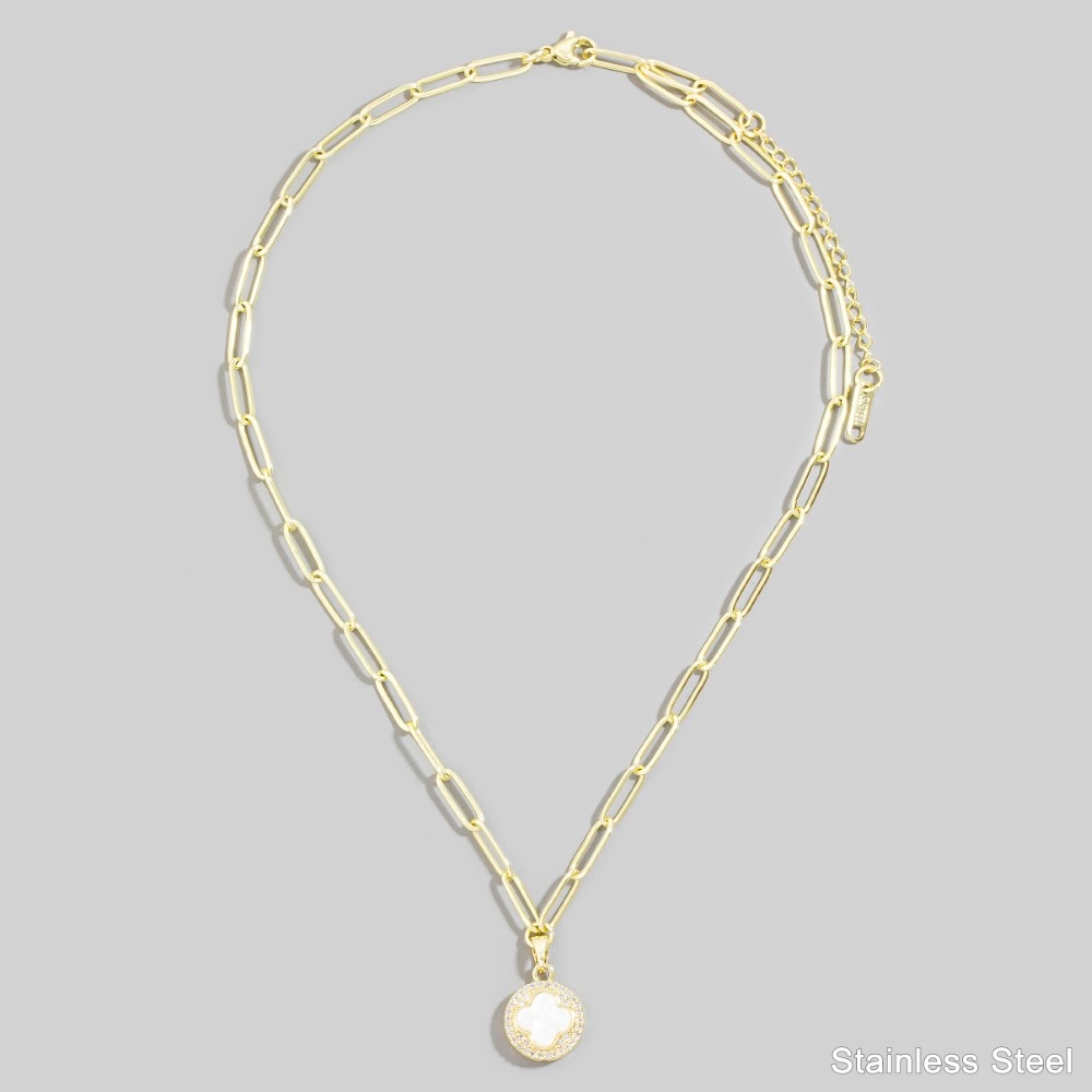 Gold Dipped Mother Of Pearl Clover Pendant Necklace