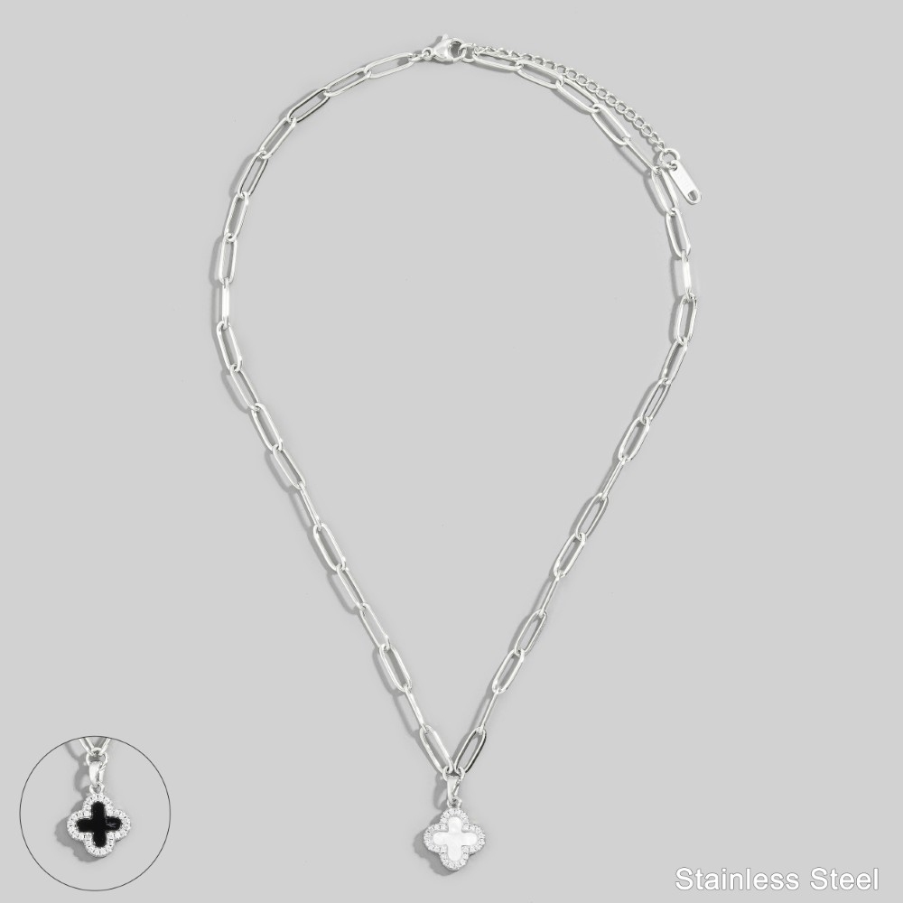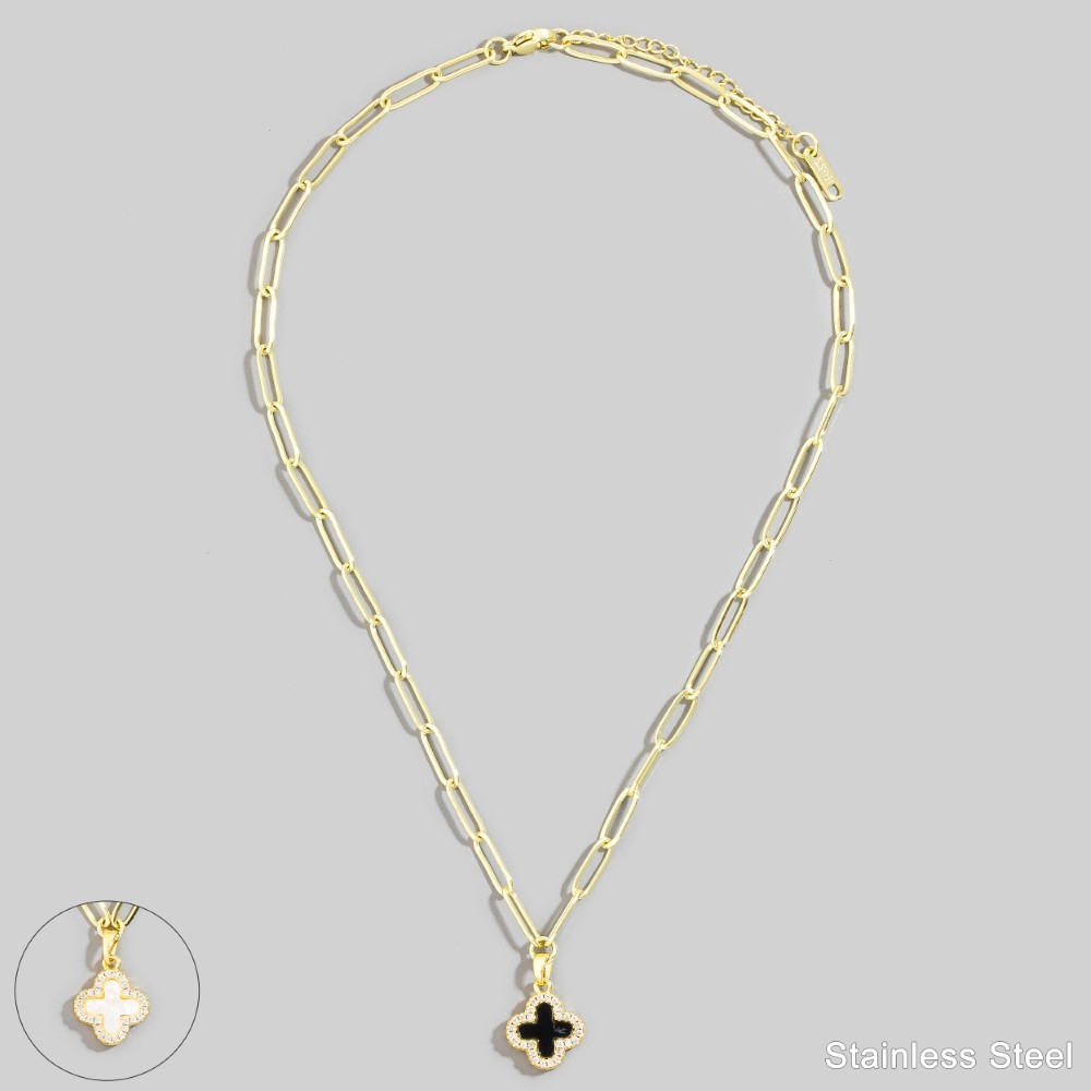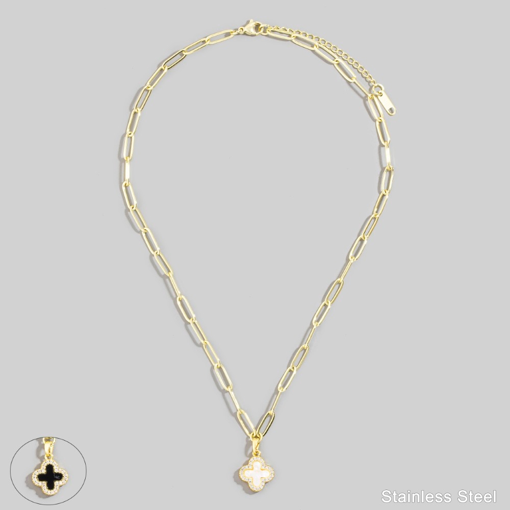 • A must-have addition to any pendant necklace collection, this pendant necklace incorporates a remarkable stainless steel two tone clover design. Elevate your fashion IQ with this versatile pendant necklace, designed to seamlessly integrate into any style profile. Available in GBK, GMOP, SMOP. This item is sold in packs of 1.