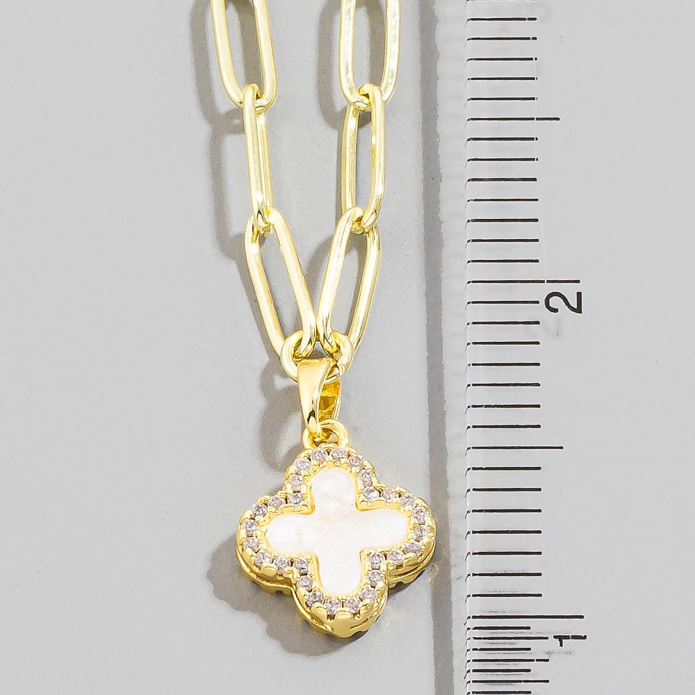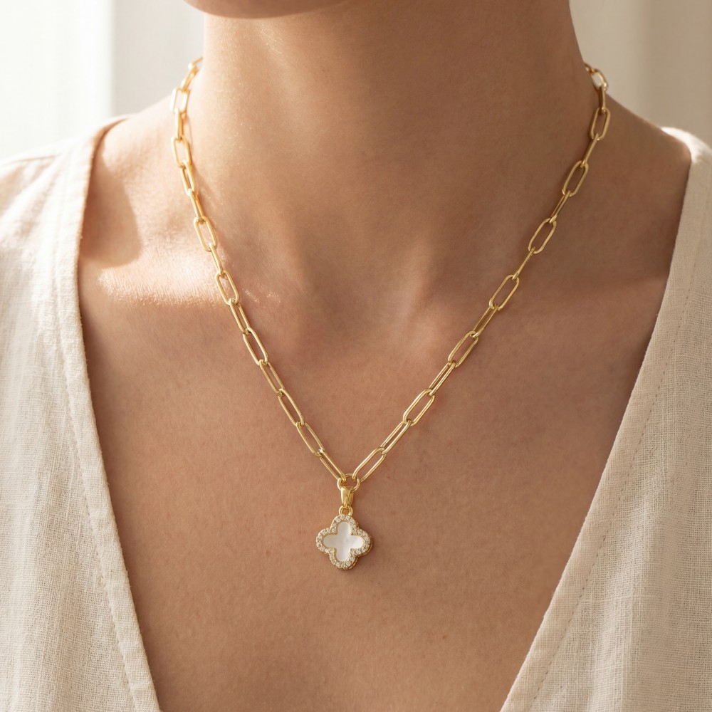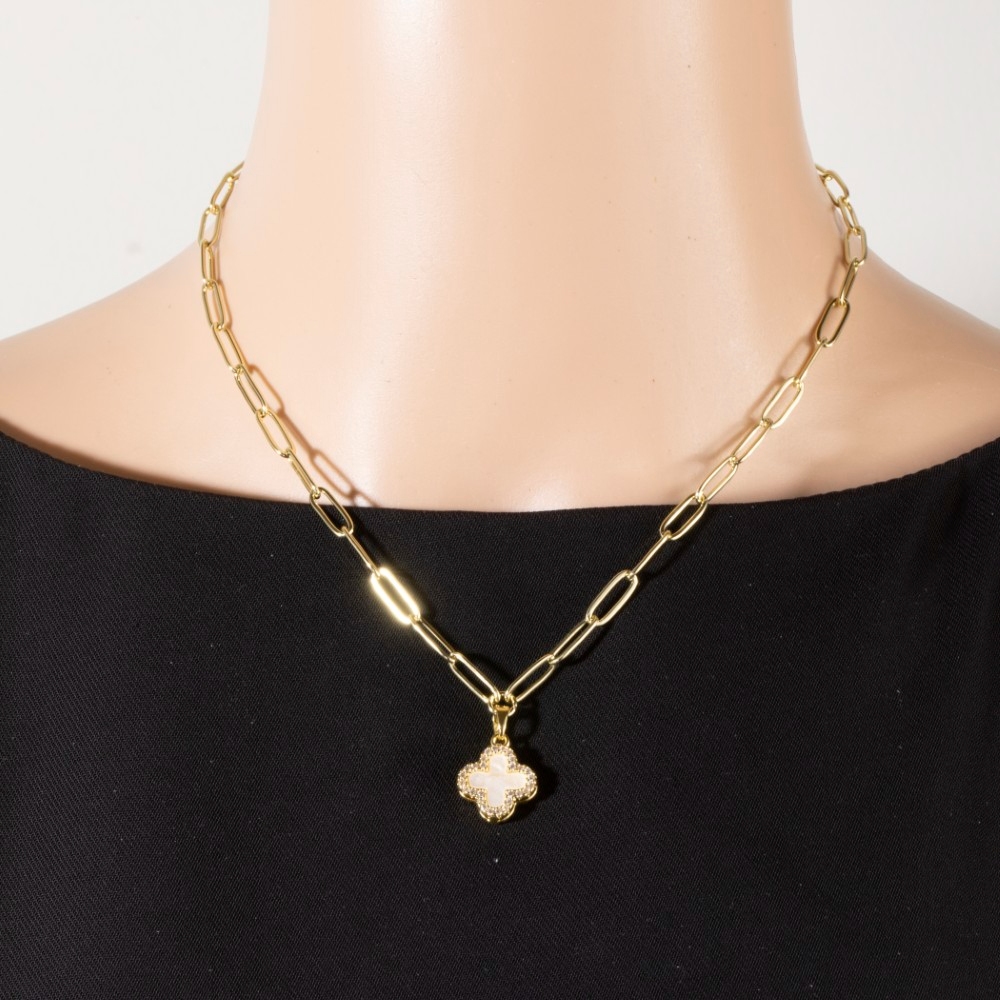 Gold Dipped Mother Of Pearl Clover Pendant Necklace