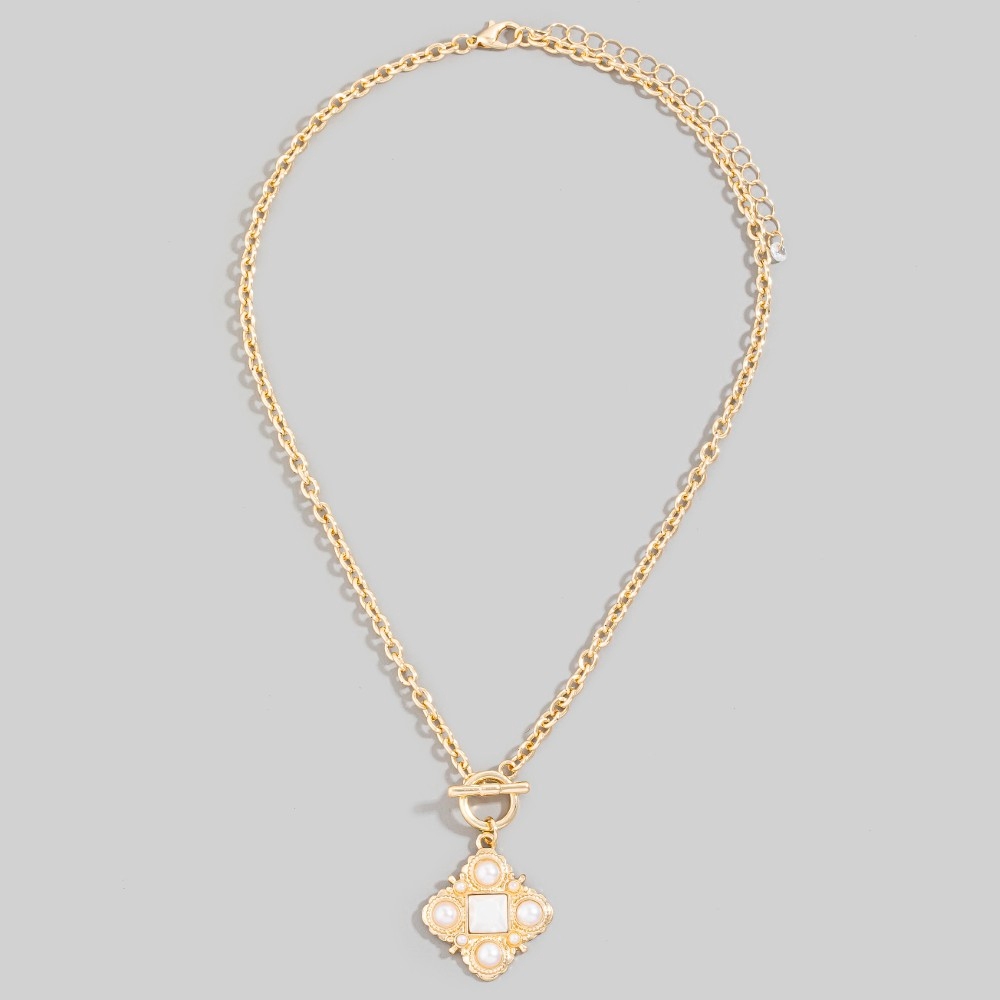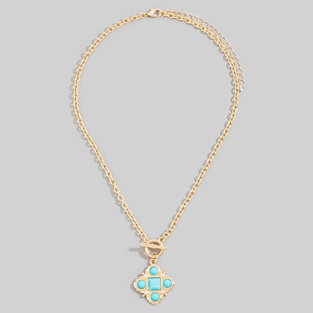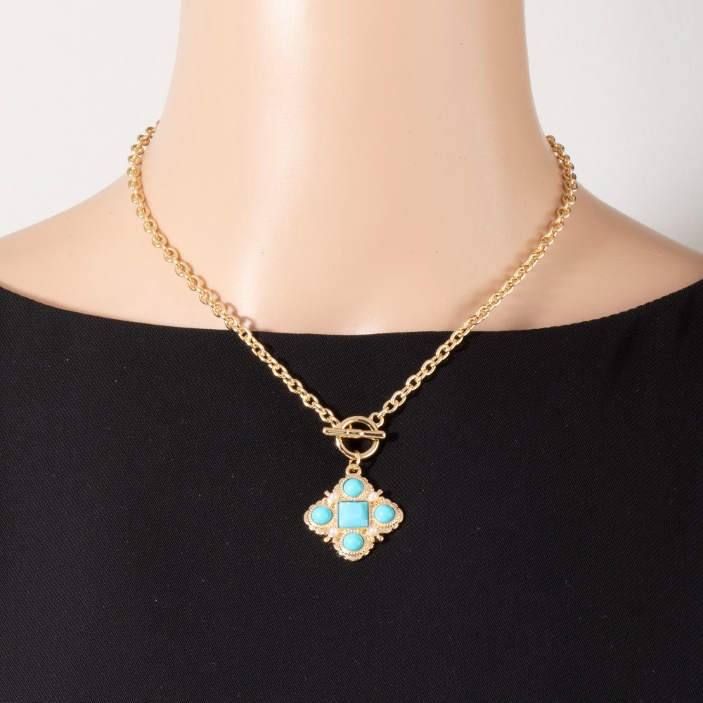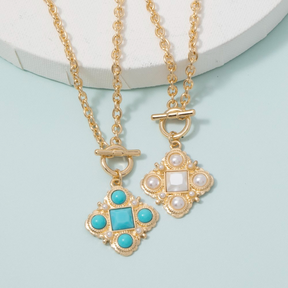 • The perfect way to showcase your unique style, this chain necklace showcases a breathtaking studded clover pendant toggle design. Elevate your fashion IQ with this versatile chain necklace, designed to seamlessly integrate into any style profile. Available in PR, TQ. This item is sold in packs of 1.