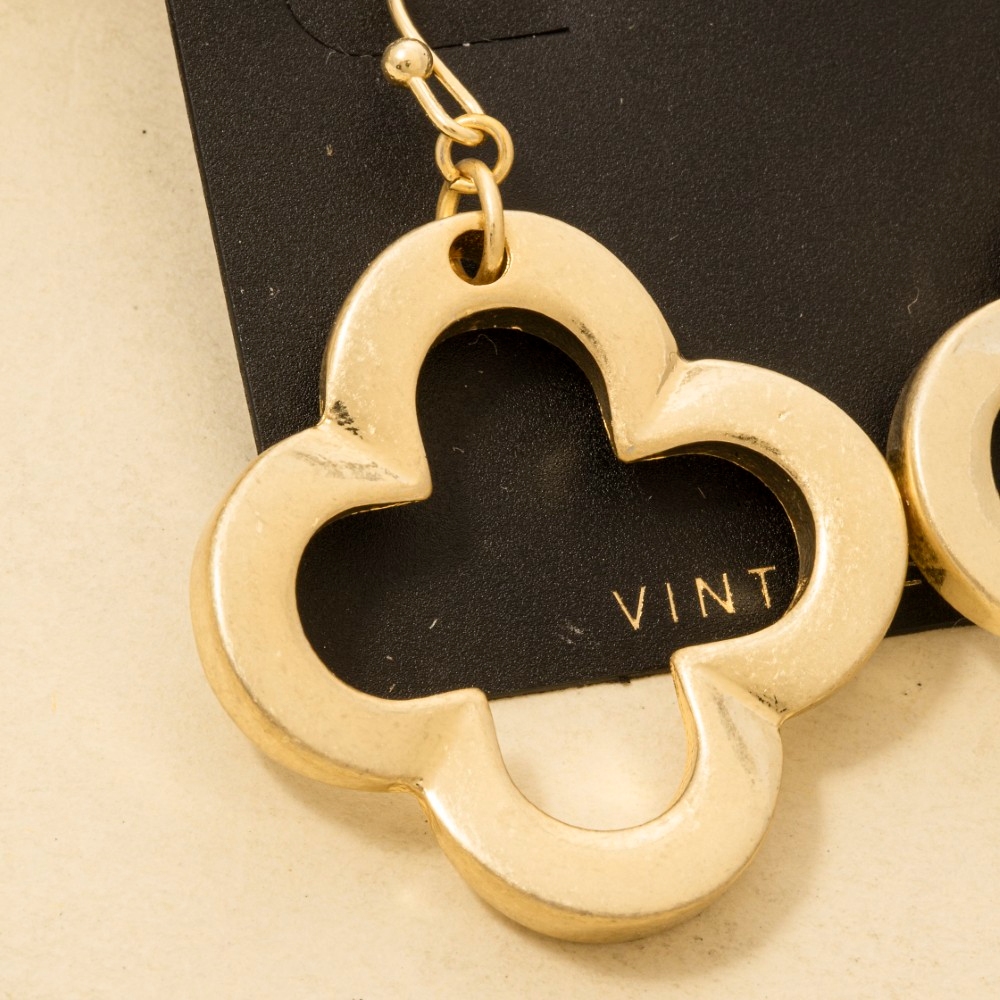 Bold, daring, and endlessly stylish, this pair of dangle earrings displays a unique vintage gold thick clover design. A stylish pair of dangle earrings that's perfect for complementing any outfit you wear. Available in GOLD. This item is sold in packs of 1.