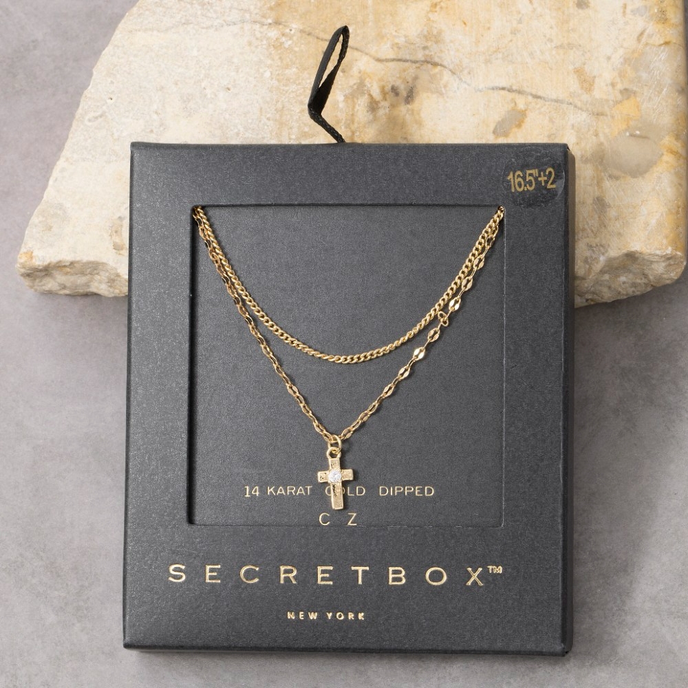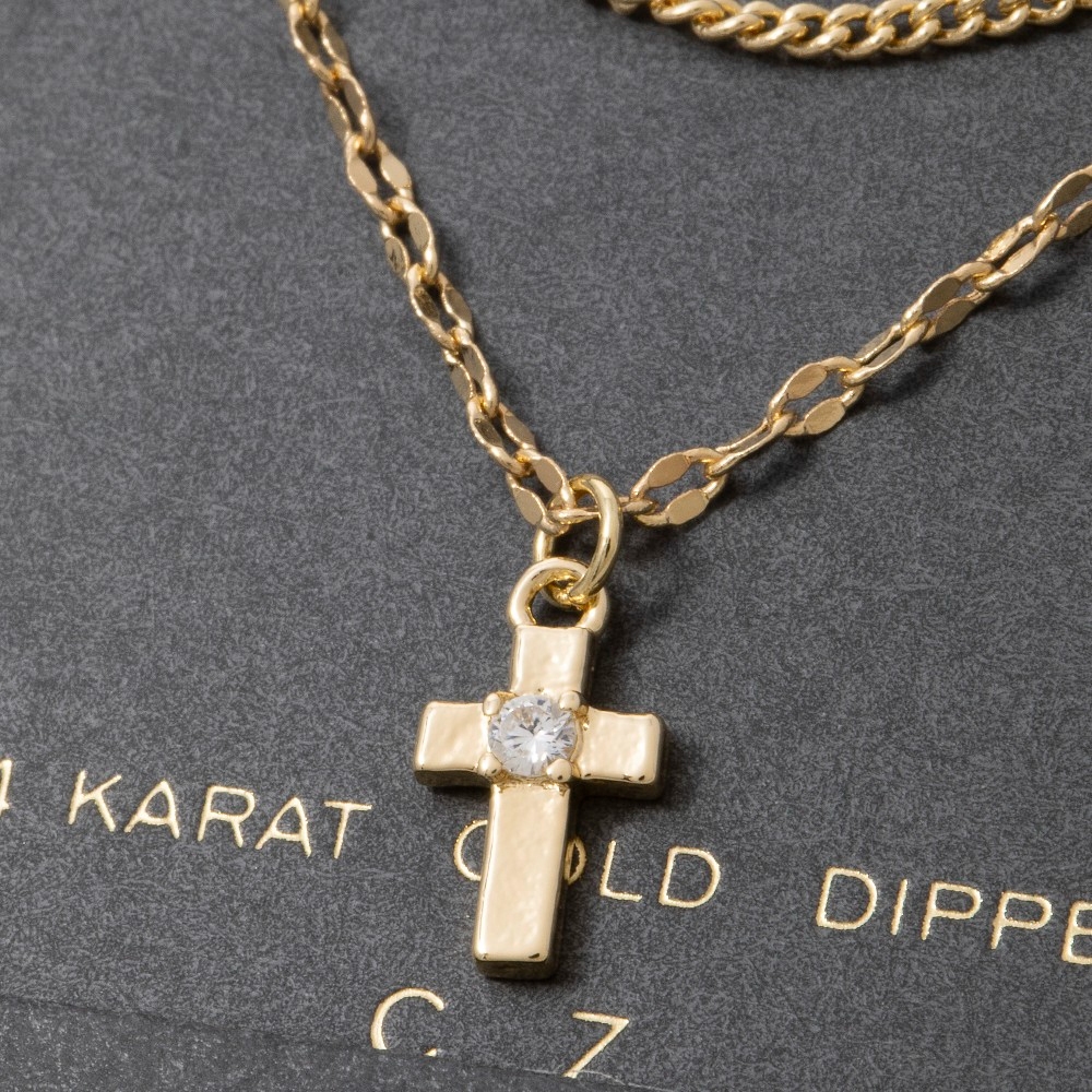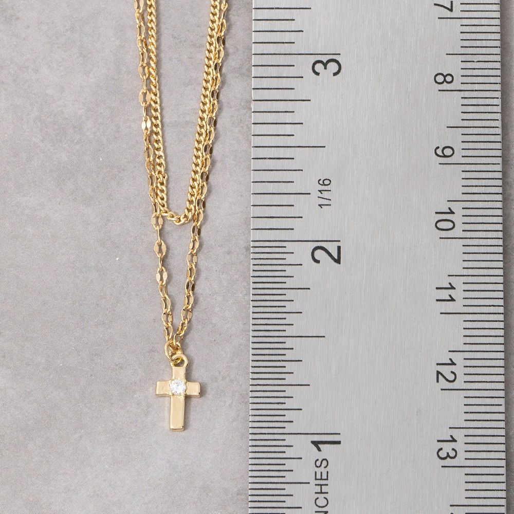 • Stay on-trend and stand out from the crowd, this layered necklace shows off a distinctive 14k gold dipped cubic zirconia cross design. This layered necklace is an effortless way to add some personality to your outfit. Available in GD. This item is sold in packs of 1.
